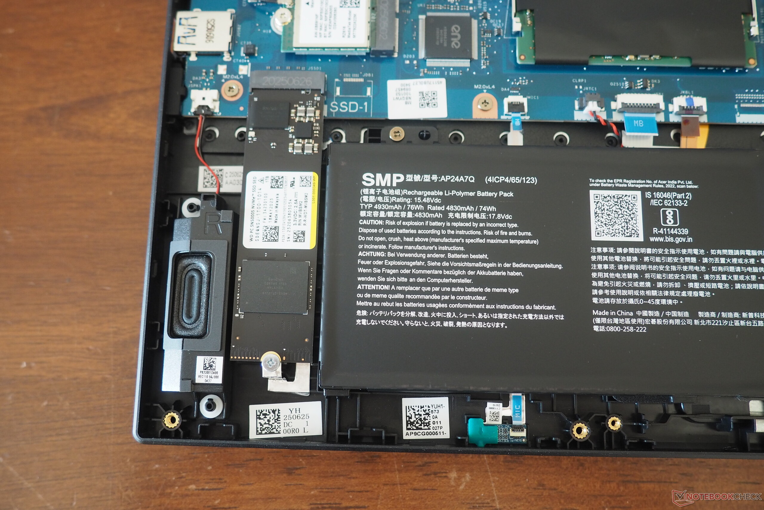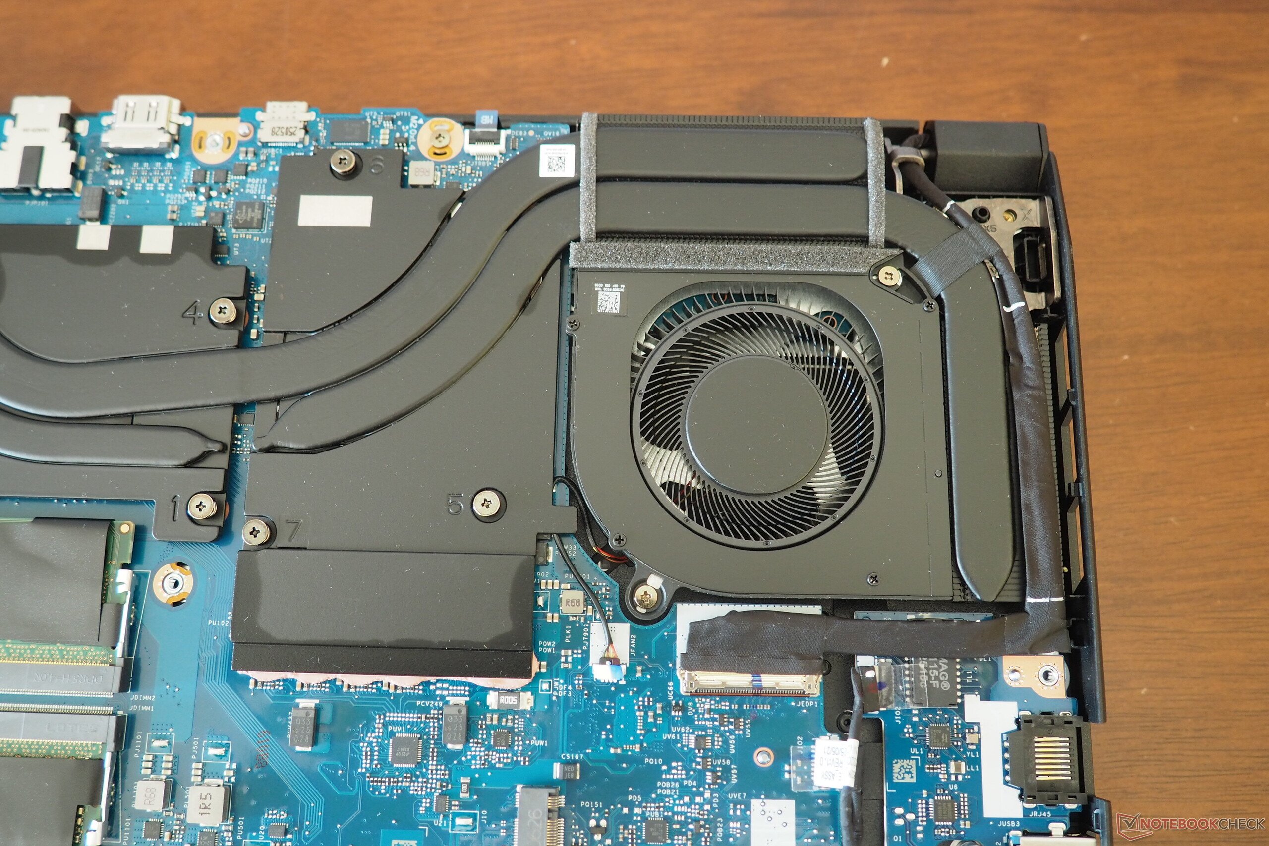 总共需要拧松 10 颗十字螺丝才能进入内部。在引擎盖下,除了带有两个风扇的冷却系统外,还有无线模块、电池、两个 SO-DIMM 和两个 M.2 插槽。
