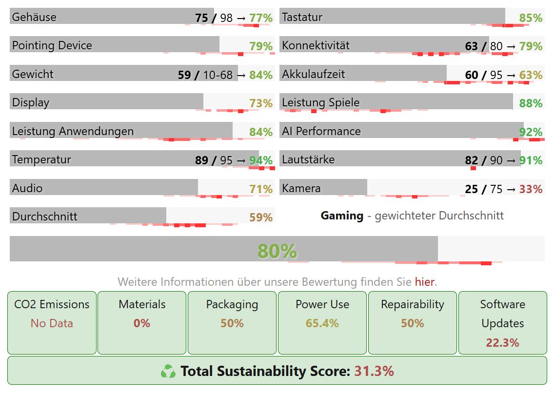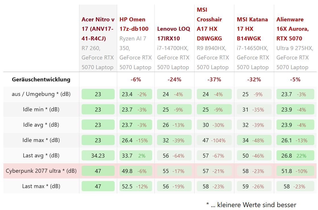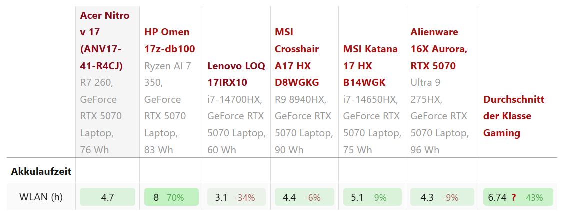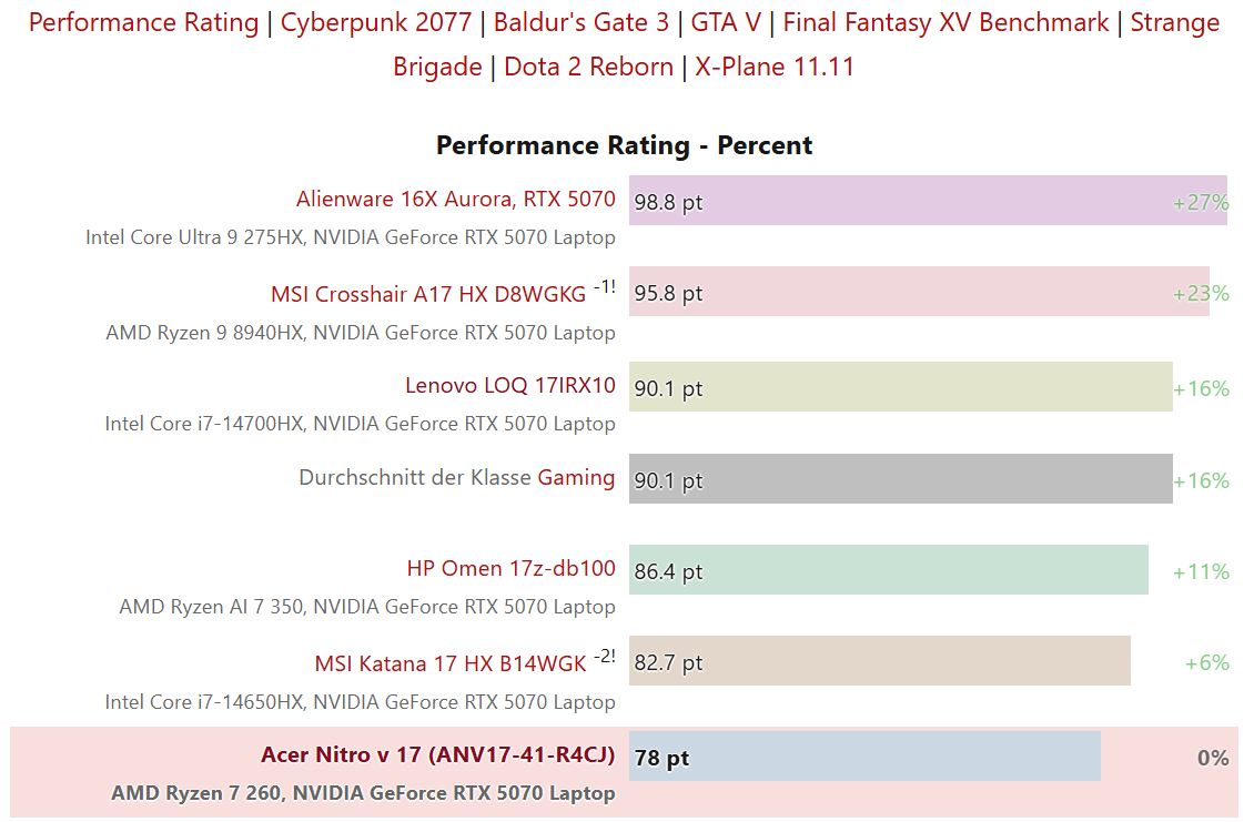 尽管如此,宏碁 Nitro V 17 还配备了 WQHD 面板(2560 × 1440 像素),DCI-P3 覆盖率为 100%,刷新率为 165 Hz。不过,这种配置将价格推高到 1699 欧元,并包括 32 GB 内存(而不是 16 GB),使其处于明显不同的价格档次。