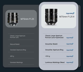 重量从 600 克减少到 514 克,光圈环据说操作起来更加顺畅,而且根据制造商的宣传,虚化效果也比前一代产品更好。这支镜头显然是作为徕卡 Noctilux-M 1.25/75 ASPH 镜头的更实惠的替代品进行销售的,后者的价格为 15,615 美元,不仅贵得多,而且重一倍。选择 7Artisans镜头的用户将不得不忍受相对较低的图像质量。