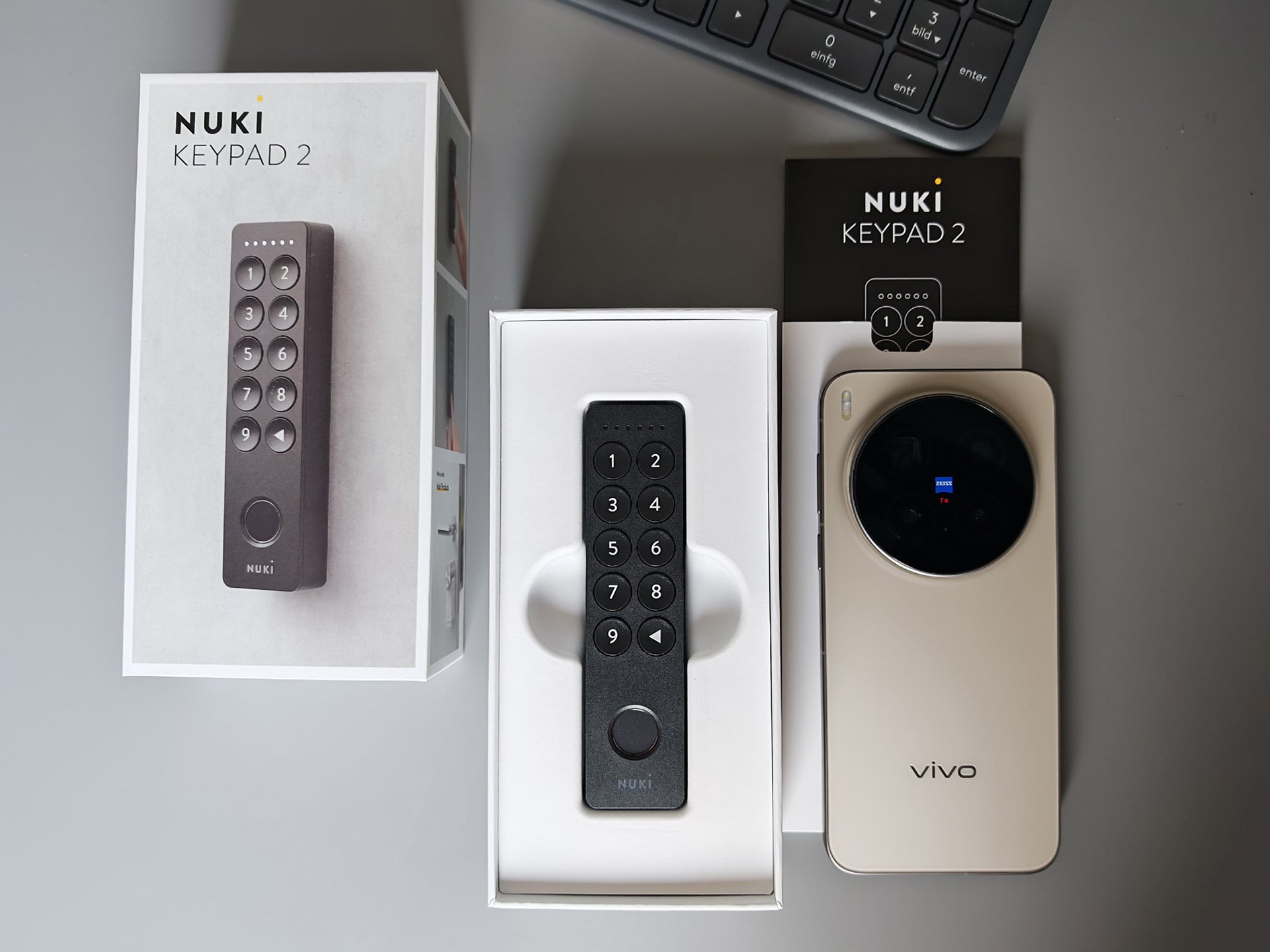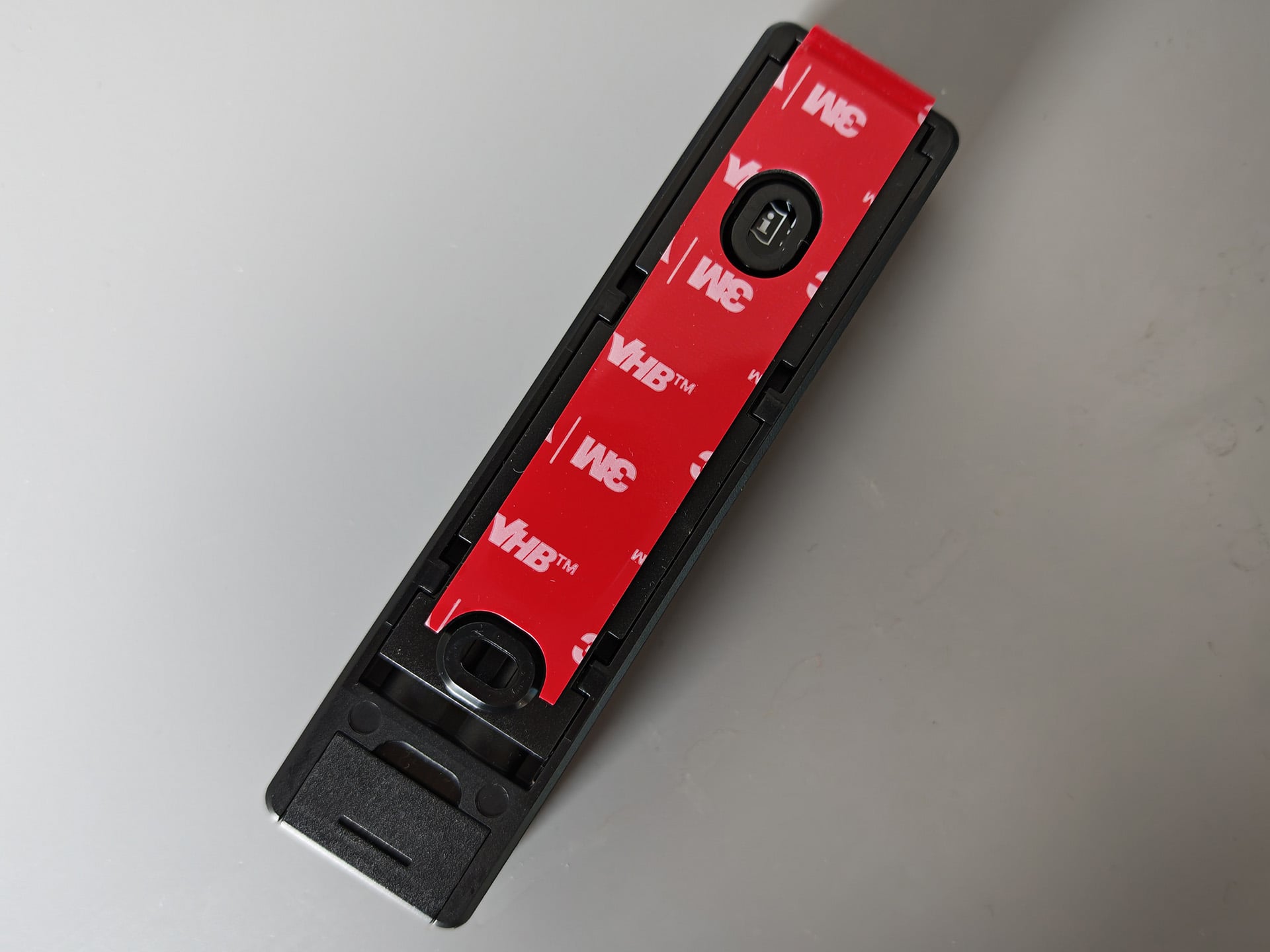 键盘可以用一个小底板固定,底板可以钻孔或用胶带粘贴。它的耐候性符合 IP54 标准,可承受 -20 至 +70 °C 的室外温度。它通过蓝牙与智能锁连接,由四节 AAA 电池供电,可保证至少 12 个月的运行时间。