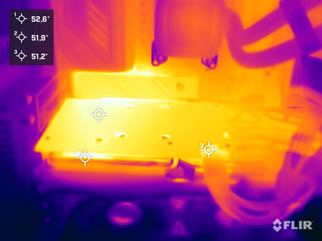 在我们的实际测试中,散热器对 GPU 废热的管理没有出现任何问题。在压力测试中,我们测得的最高芯片温度为 64.9 °C,而 VRAM 的温度则稳定在 64 °C。NvidiaGeForce RTX 5070 Ti 没有 GPU 热点数据。