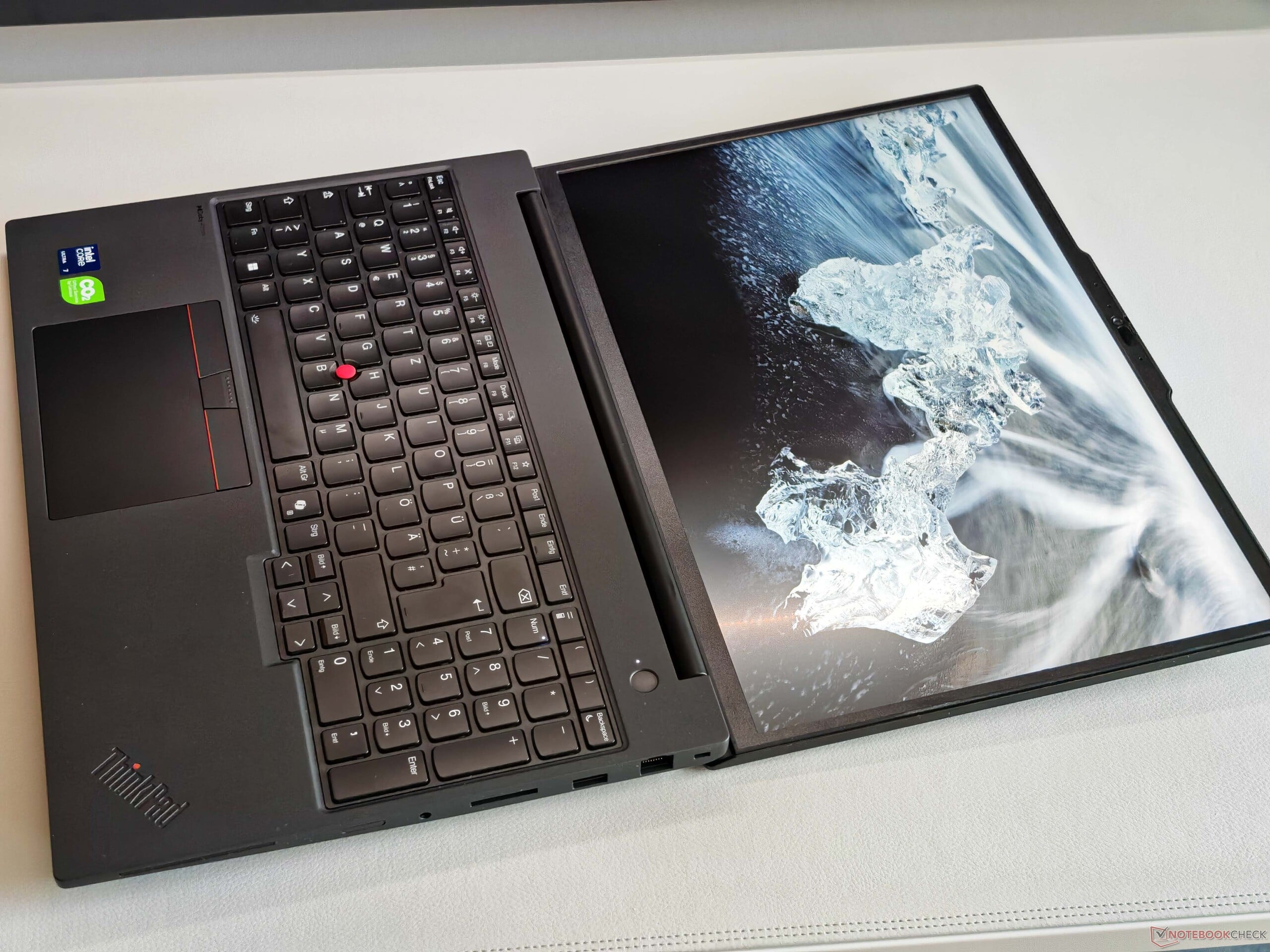 在连接方面没有什么可抱怨的,但两个 Thunderbolt 4 端口中的一个总是被电源装置占用。Wi-Fi 7 模块实现了良好而稳定的传输速率,还有一个以太网端口可用。此外,还为 WWAN 模块预留了空间,但天线没有预路由(不支持 WWAN)。读卡器的传输速率一般,500 万像素网络摄像头(带快门和红外功能)可拍摄可用照片。