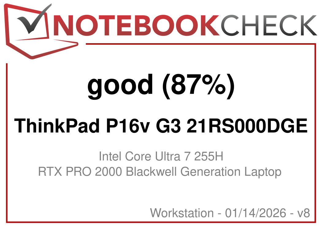 | Lenovo ThinkPad P16v G3 21RS000DGE Ultra 7 255H, RTX PRO 2000 Blackwell Generation Laptop, 90 Wh | Lenovo ThinkPad P1 Gen 8 Ultra 7 255H, RTX PRO 2000 Blackwell Generation Laptop, 90 Wh | HP ZBook X G1i 16 Ultra 7 265H, RTX PRO 2000 Blackwell Generation Laptop, 83 Wh | HP ZBook Power 16 G11 A R7 8845HS, RTX 2000 Ada Generation Laptop, 83 Wh | Lenovo ThinkPad P16s Gen 4 21RX000YGE Ryzen AI 9 HX PRO 370, Radeon 890M, 86 Wh | Average of class Workstation | |