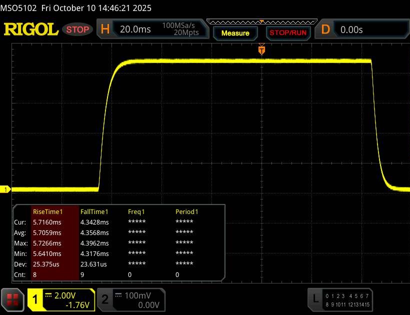 10.1 ms ... rise ↗ and fall ↘ combined | ↗ 5.7 ms rise | |