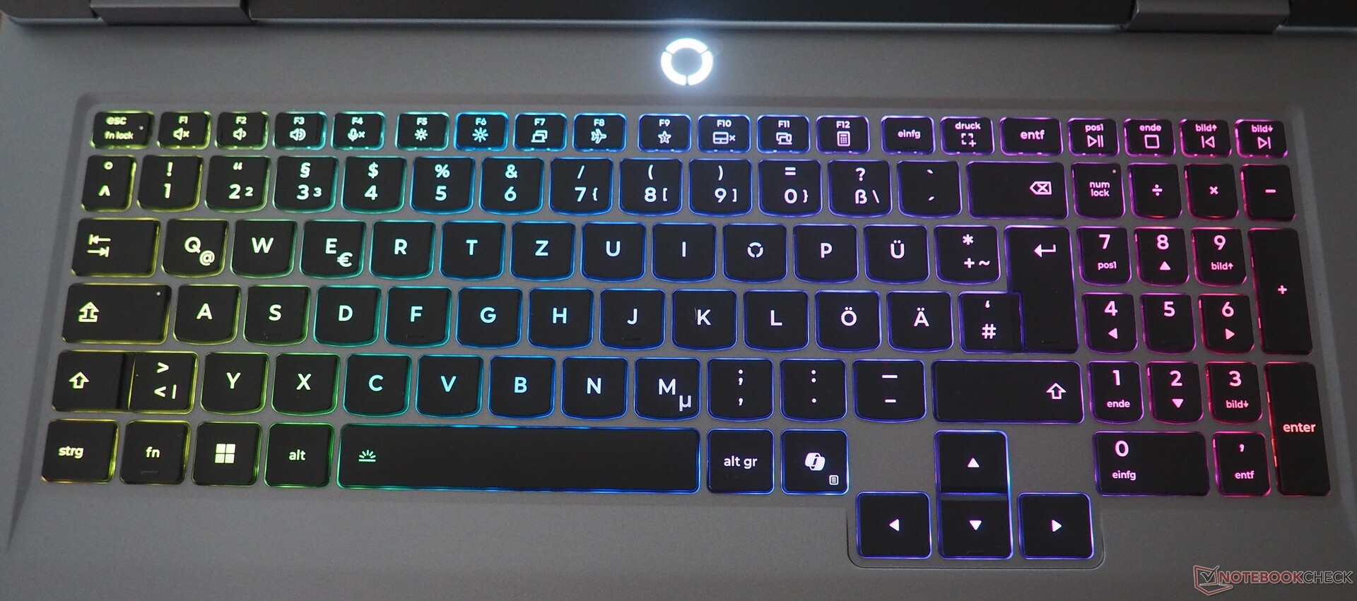 由于颜色相对较浅(月光灰),机箱给人留下了深刻的印象,玩家也会喜欢键盘上的 RGB 灯光。该产品的制造质量和稳定性几乎没有可抱怨的地方,表面一般只在强力压力下才松动。一个亮点是 180° 的显示器开合角度,这可不是每天都能看到的。