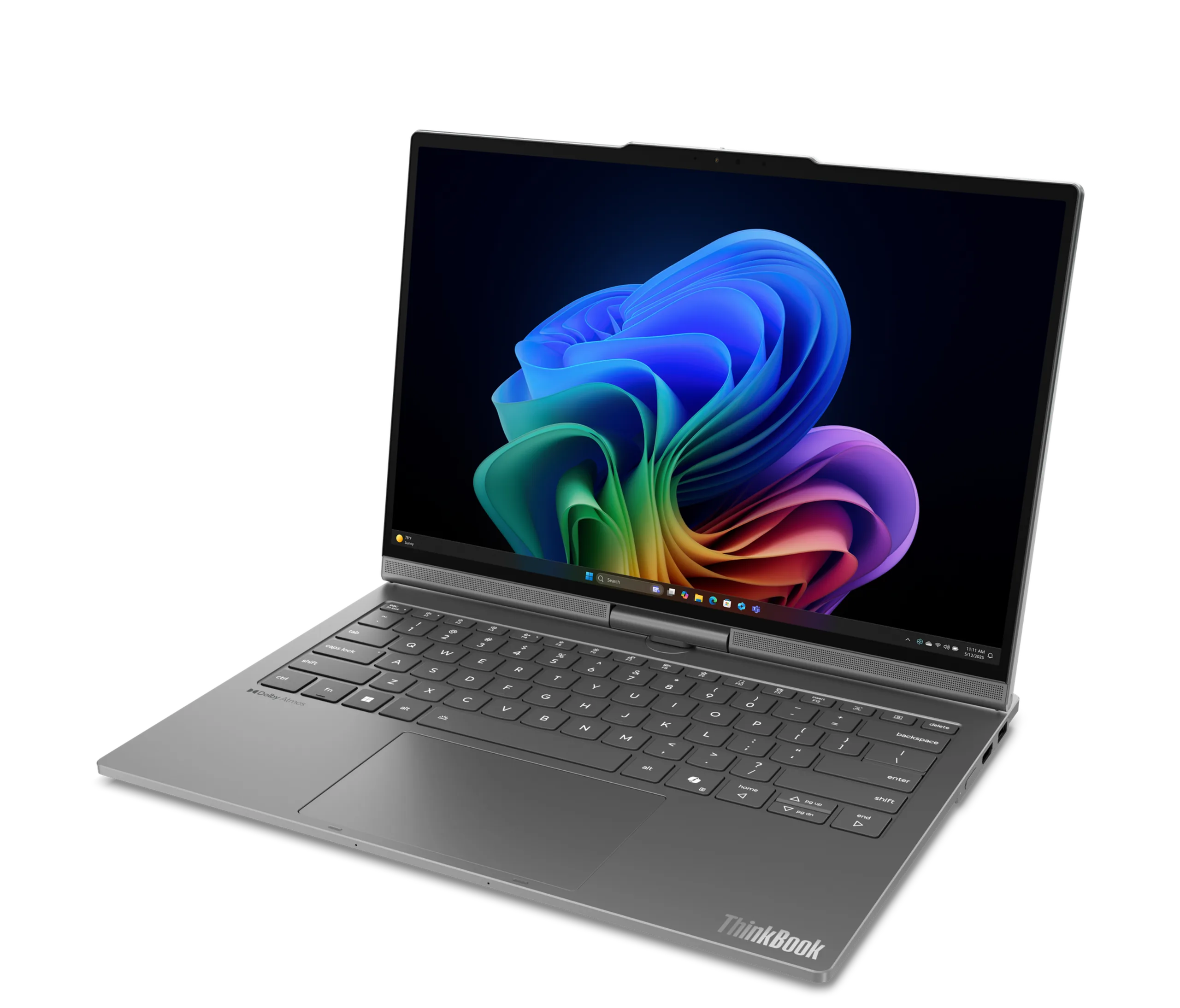 乍一看,ThinkBook Plus Gen 7 Auto Twist 采用了传统的蛤壳式外形设计,非常普通。不过,ThinkBook Plus Gen 7 Auto Twist 有一个电动显示屏铰链,因此得名,它能自动旋转 2.8K OLED 面板可根据用户的位置等因素自动旋转 2.8K OLED 面板。该铰链允许将 14 英寸 120 Hz 显示屏放置在各种位置,从标准方向到类似平板电脑的配置。