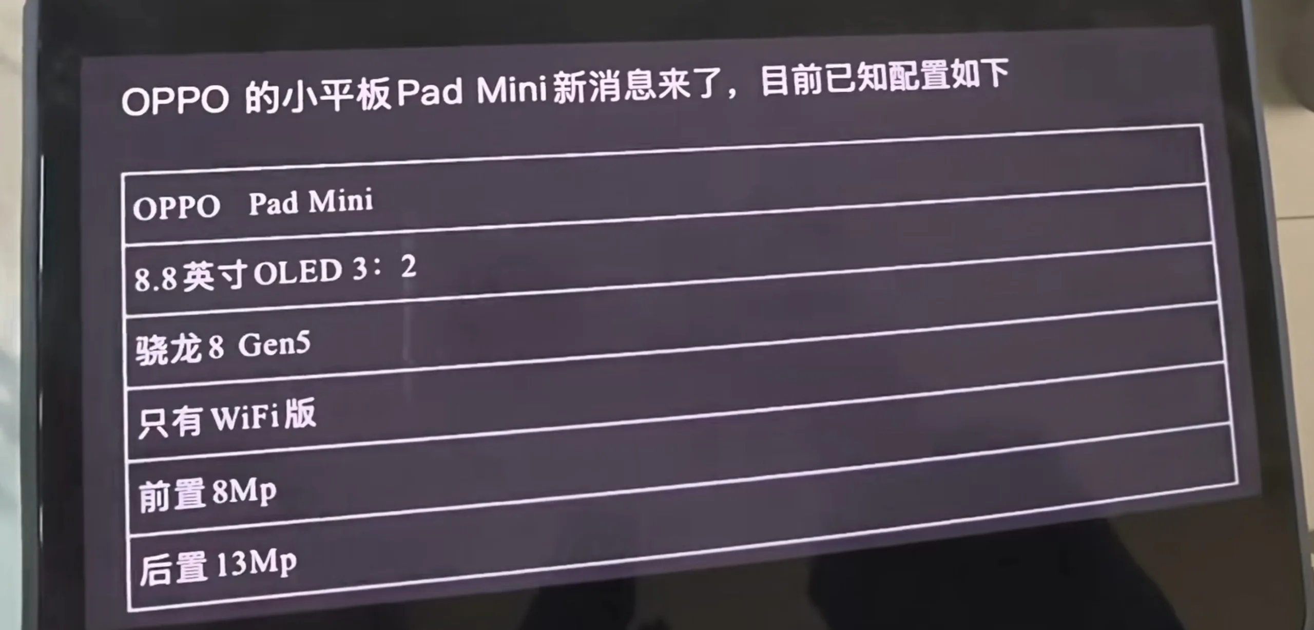 据报道,Oppo Pad Mini 将采用定制的 8.8 英寸高刷新率 OLED 显示屏,这已经使它与华为的 MatePad Mini.