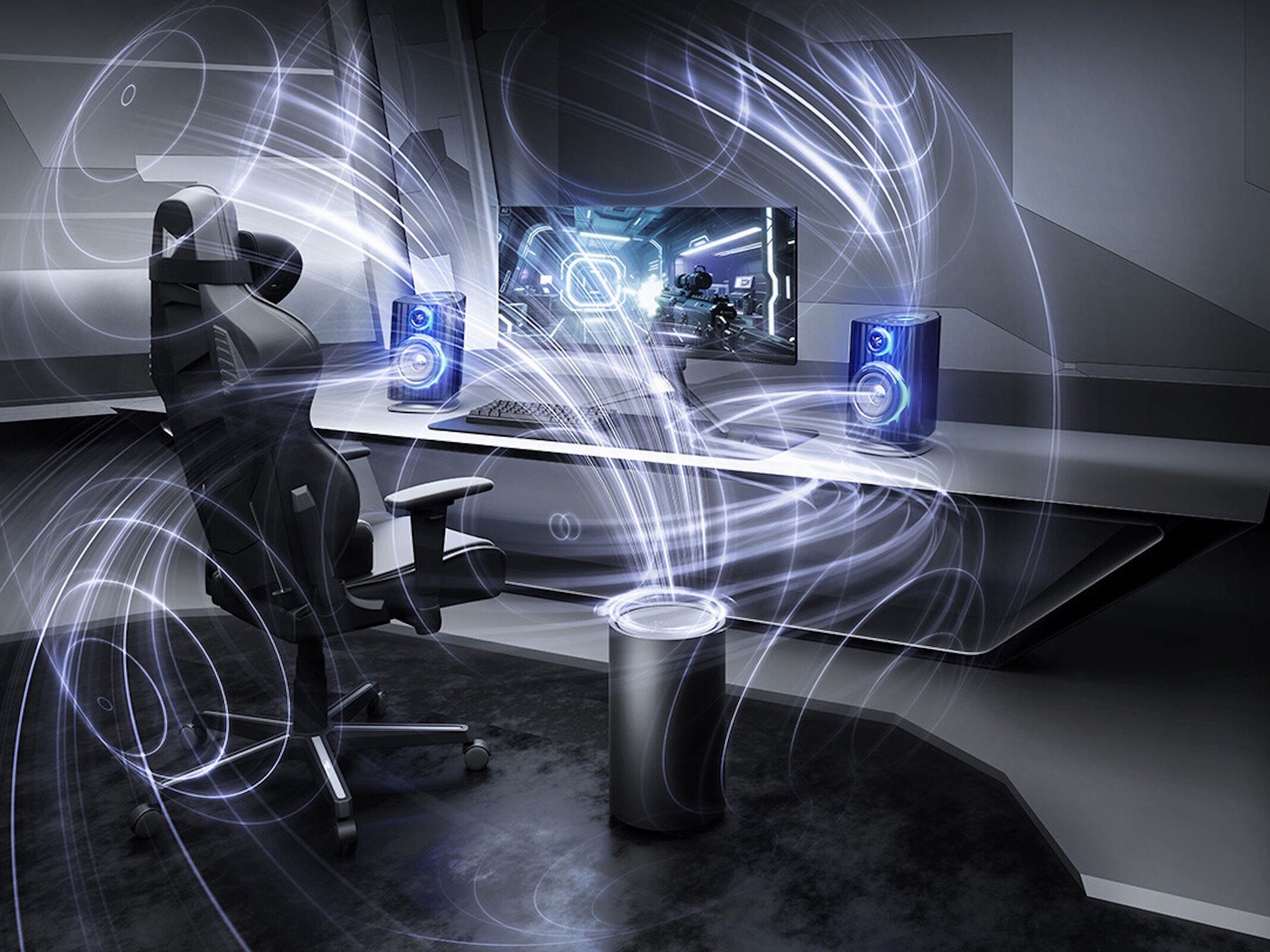 新款 OXS 扬声器系统旨在放置在台式机上,因此可与游戏 PC 或 PlayStation 5 和 Xbox Series X/S 等游戏机配合使用。Thunder Duo Max 是顶级版本,配有无线重低音扬声器,可提供更强劲的低音。另一方面,Thunder Duo X 是 5.1.2 声道系统,颈部扬声器为卫星扬声器,因此卫星扬声器会随着游戏椅移动。