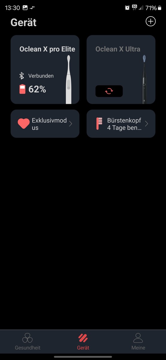 Oclean X Pro Elite 可以通过 "Oclean Care+"应用程序进行设置,该应用程序可在 iOS 和Android 上使用--不过,它只能在有额外账户的情况下使用。与X Ultra SOclean Care+ 的设置选项非常有限,收集到的刷牙习惯数据也比较简单。不过,由于固件更新只能通过已建立蓝牙连接的应用程序来安装,因此还是建议与 Pro 型号配对使用。