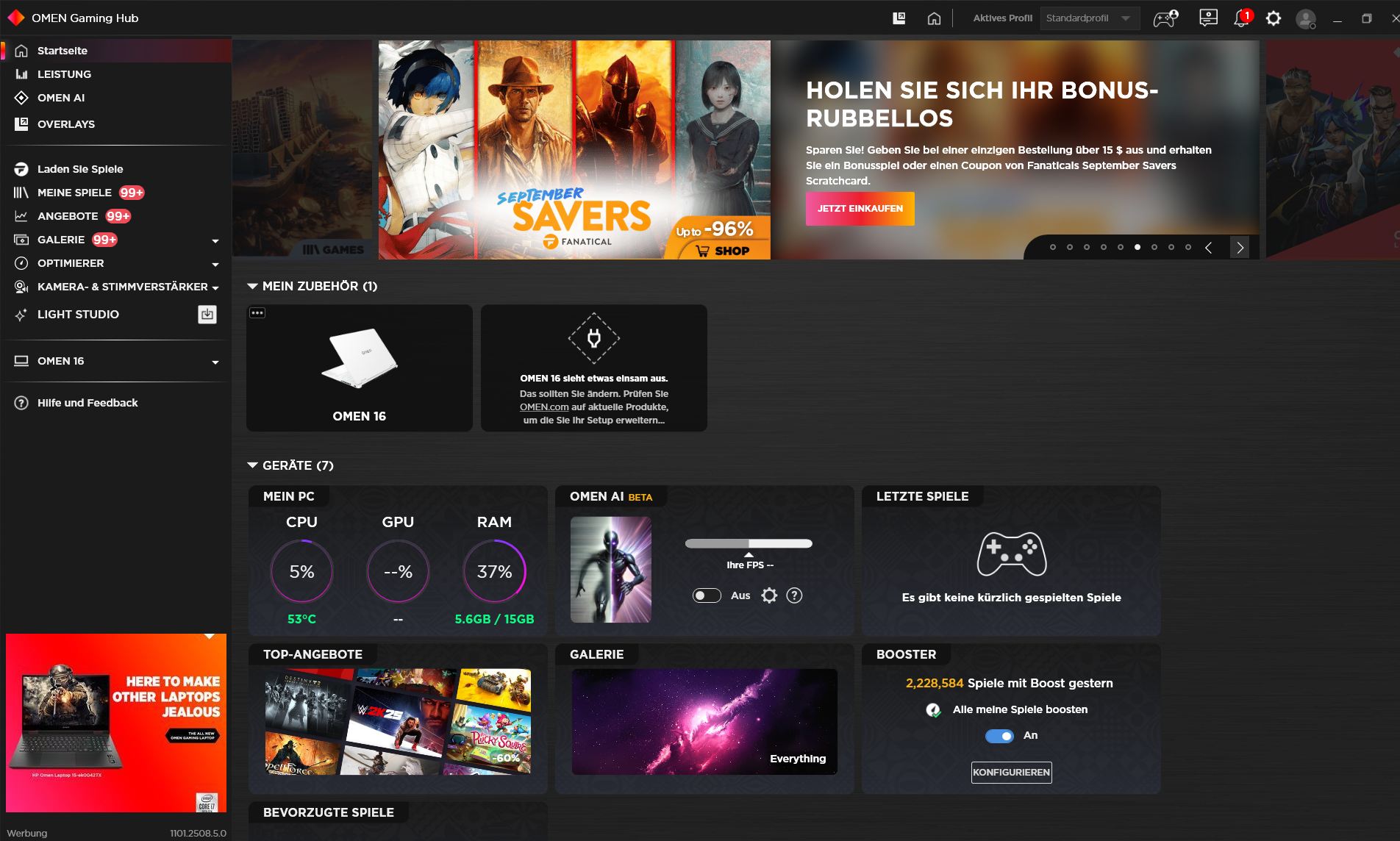 HP Omen 16-ap0091ng AMD Ryzen 9 8940HX ⎘ Nvidia GeForce RTX 5060 Laptop ⎘ 16 GB Memory, 1000 GB SSD | Amazon: 1. $19.99 BestParts New CPU+GPU Coolin... 2. $16.99 Fleshy Leaf CPU+GPU Cooling ... 3. $35.99 Replacement Backlit Keyboard... List Price: 1500 Euro | 2.4 kg | 23.7 mm | 16.00" 1920x1200 162 PPI IPS | |