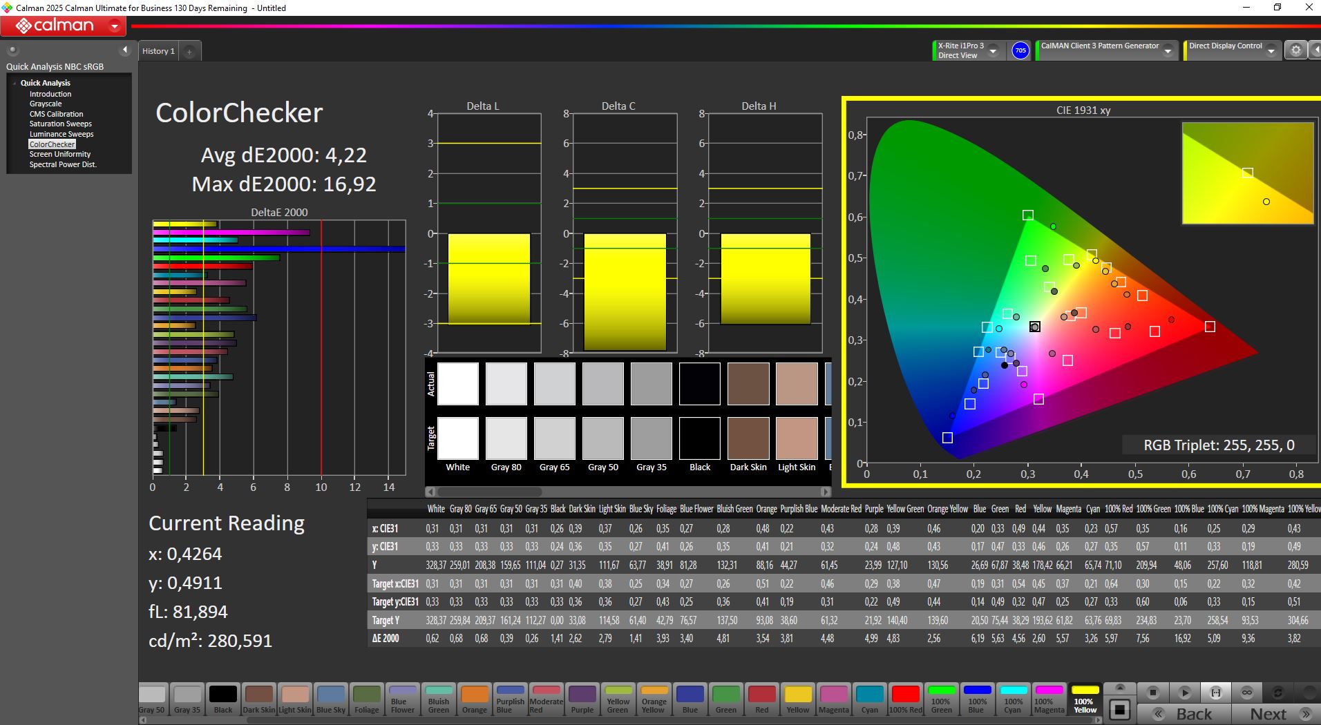 Colorchecker dE 2000 calibrated * | 4.22 | 0.93 78% | 1.05 75% | 0.94 78% | 0.93 78% | |