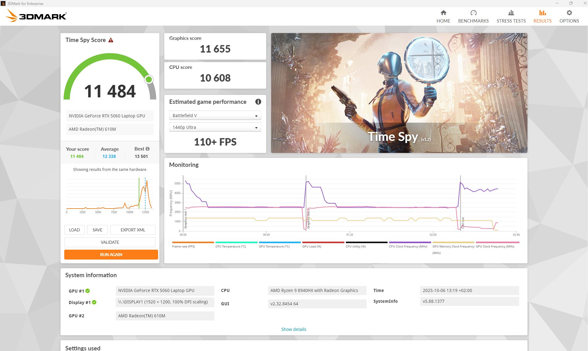 我们的测试机型配备 AMD 的 Ryzen 9 8940HX和 Nvidia 的 RTX 5060以及 16 GB 内存和 1 TB 固态硬盘。这使它成为一款中高端游戏笔记本电脑,能够以原始分辨率流畅运行大多数游戏。