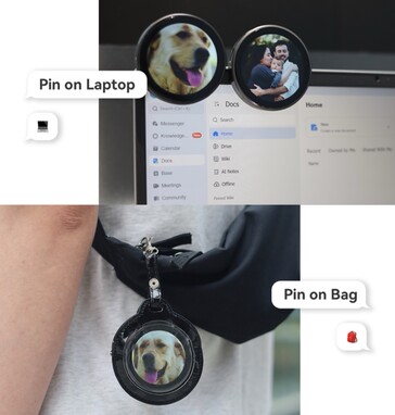 此外,液晶显示屏的耗电量相对较大。没有背光的 MiP 显示屏的电池续航时间应为数天至数周,而液晶显示屏的电池续航时间预计只有几小时;制造商没有说明 400 毫安时电池的续航时间。充电通过 USB-C 接口进行。通过 2 GB 的内置存储空间和可选的 microSD 卡(最大 32 GB),可在别针上直接存储数百个视频片段。胸针可以用安全别针或磁力吸附在衣服上。