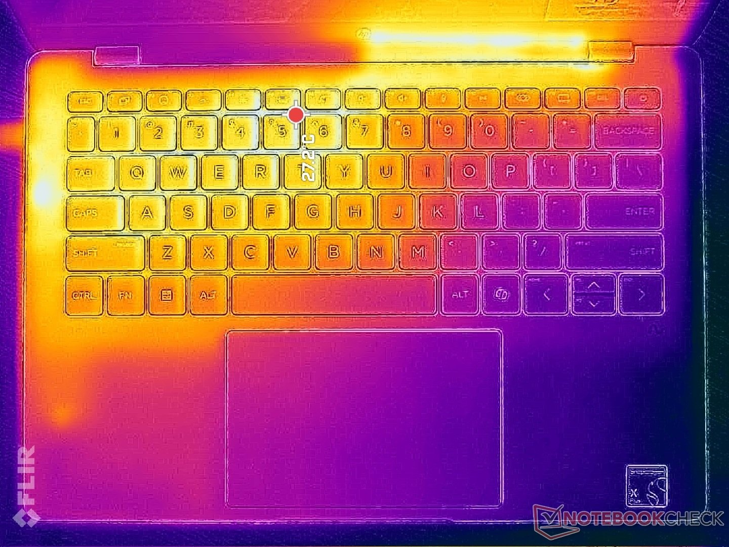 (+) The palmrests and touchpad are cooler than skin temperature with a maximum of 28 °C / 82.4 F and are therefore cool to the touch.