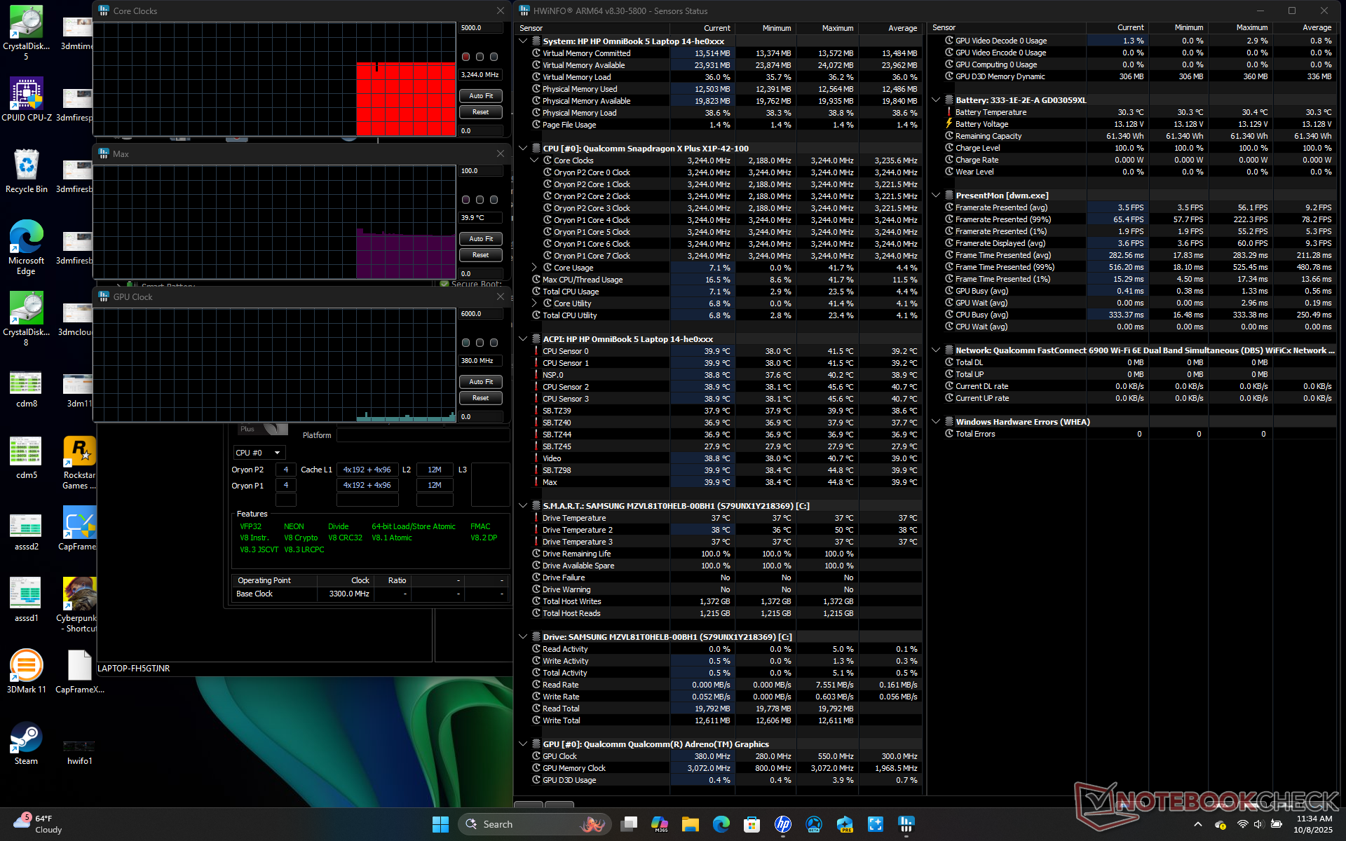 HP Omnibook 5 14 Adreno X1-45 1.7 TFLOPS, SD X Plus X1P-42-100, Samsung PM9C1 MZVL81T0HELB-00BTW | HP OmniBook X 14 Adreno X1-85 3.8 TFLOPS, SD X Elite X1E-78-100, WD PC SN560 SDDPNQE-1T00 | Dell 14 Plus Arc 140V, Core Ultra 7 256V | Lenovo ThinkBook 14 Gen 8 21SJ007SGE Arc 140T, Ultra 7 255H, Western Digital PCSN5000S SDEPMSJ-1T00-1101 | Samsung Galaxy Book4 Edge 14 Adreno X1-85 3.8 TFLOPS, SD X Elite X1E-80-100 | Asus ZenBook 14 OLED UX3405CA, Ultra 7 255H Arc 140T, Ultra 7 255H, Samsung PM9C1 MZVL81T0HELB-00BTW | |