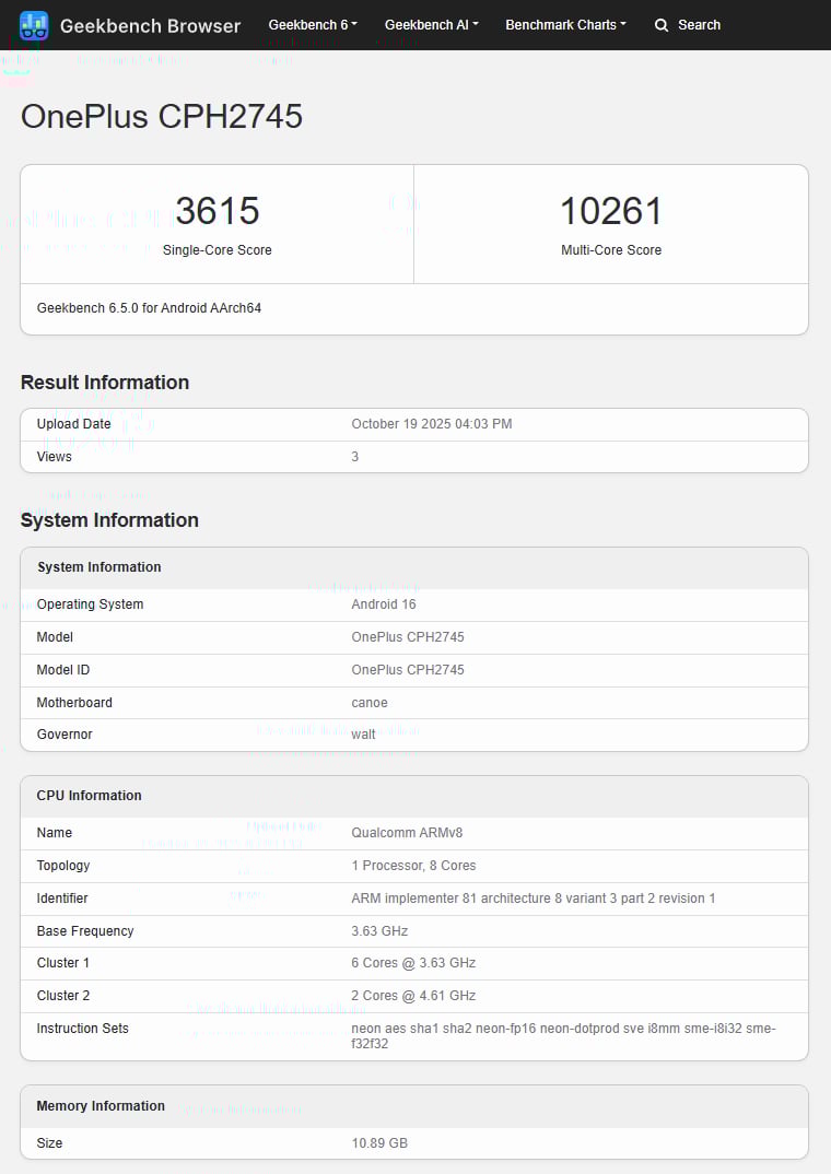 值得注意的是,这些分数与高通公司的参考设计和 RedMagic 11 Pro.这可能是由于OnePlus 15运行的是尚未完全优化的预发布软件。此外,高通公司的 "参考设计"(Reference Devices)往往优于使用相同芯片组的所有零售智能手机。顺便提一下,Geekbench 证实 OnePlus 15 一开始也将配备 12 GB 内存。如果它的前代产品是可信的,那么 OnePlus 还将提供至少 16 GB 内存的第二种内存配置。