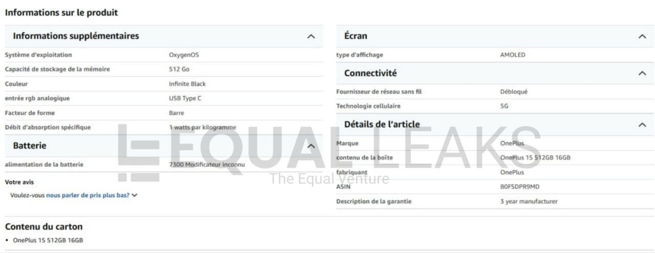 此外,Equal Leaks 在法国亚马逊上发现的一份早期清单显示,OnePlus 15 的全球版本将保持与中国机型相同的 7,300mAh 电池容量。同一消息来源还在英国亚马逊上发现了 16GB RAM + 512GB OnePlus 15 的上市信息,售价为 949 英镑。你还可以期待价格更实惠的 12GB 内存 + 256GB 存储的版本,以及最高 1TB 存储的顶级版本。