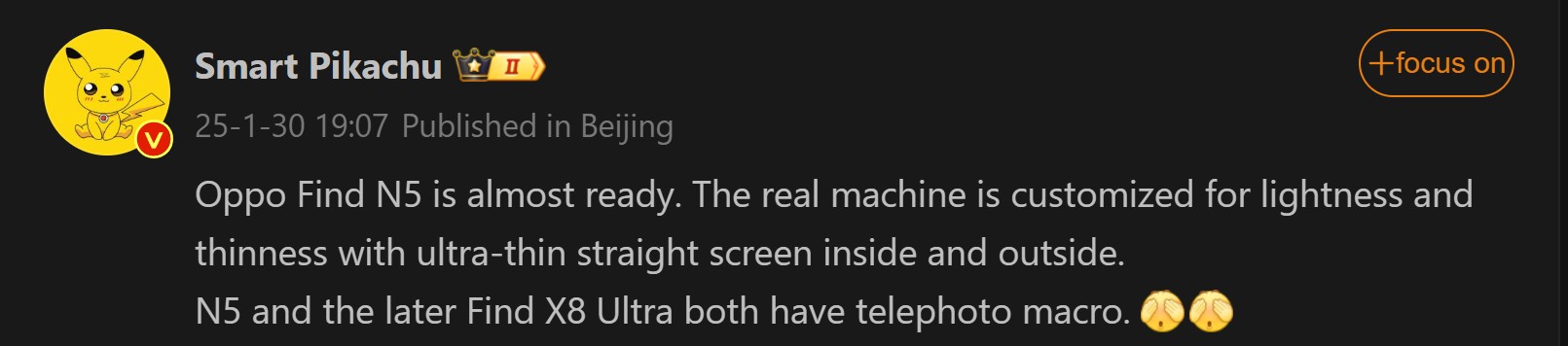 不过,围绕 OnePlus Open 2 的泄露信息已经透露了不少可能的规格和功能。最新报道之一来自知名微博爆料人 Smart Pikachu。这位泄密者透露,这款即将推出的折叠手机的长焦传感器将能够拍摄微距照片。