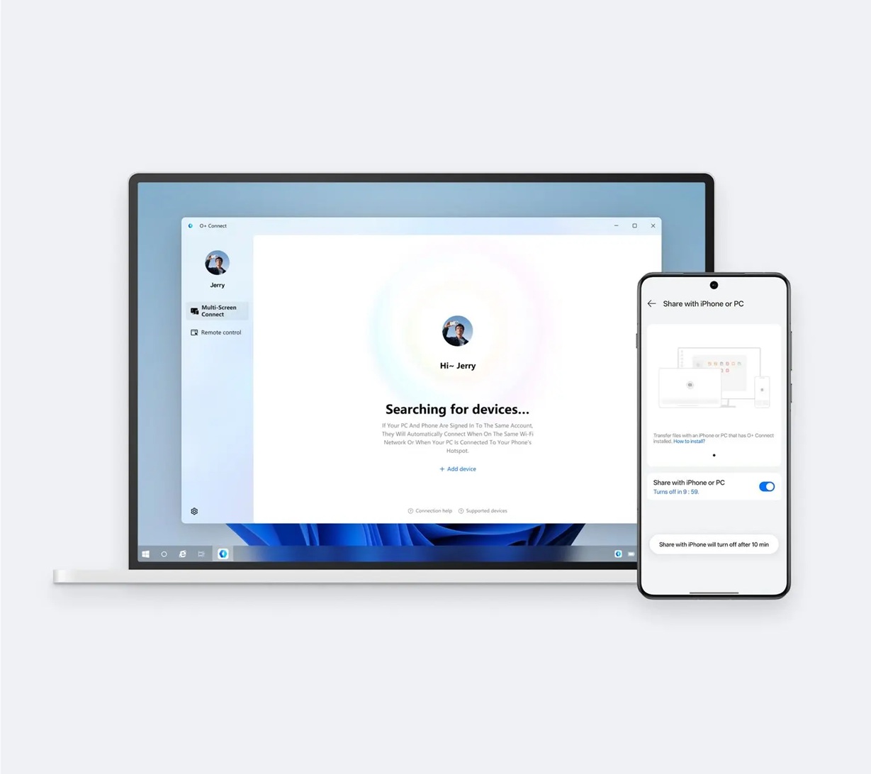 OnePlus 的最新更新带有新的 O+ Connect 功能。该系统可实现无缝文件共享,增强设备互动性。有趣的是,它还能在 OnePlus 设备和 PC 或 Mac 之间实现屏幕镜像。O+ Connect 还支持通过类似于 NameDrop 功能的工具与 iPhone 进行快速数据传输。