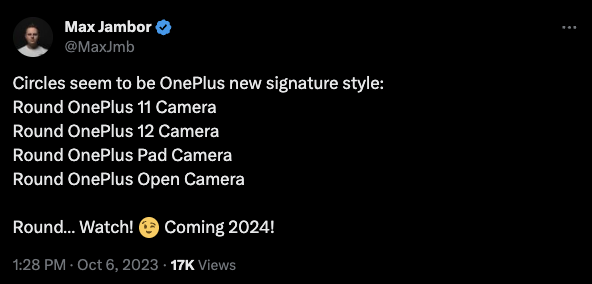 虽然简博没有直接点名这款智能手表,但他在最新的推文中已经点了名。据推测,OnePlus 已指定在世界移动通信大会(MWC)上发布 Watch 2,该大会将于今年 2 月 26 日至 2 月 29 日在巴塞罗那举行。令人惊讶的是,这意味着 OnePlus 将把其首款 Wear OS 智能手表与 一加 12和 一加 12R将于1月23日在全球展示。