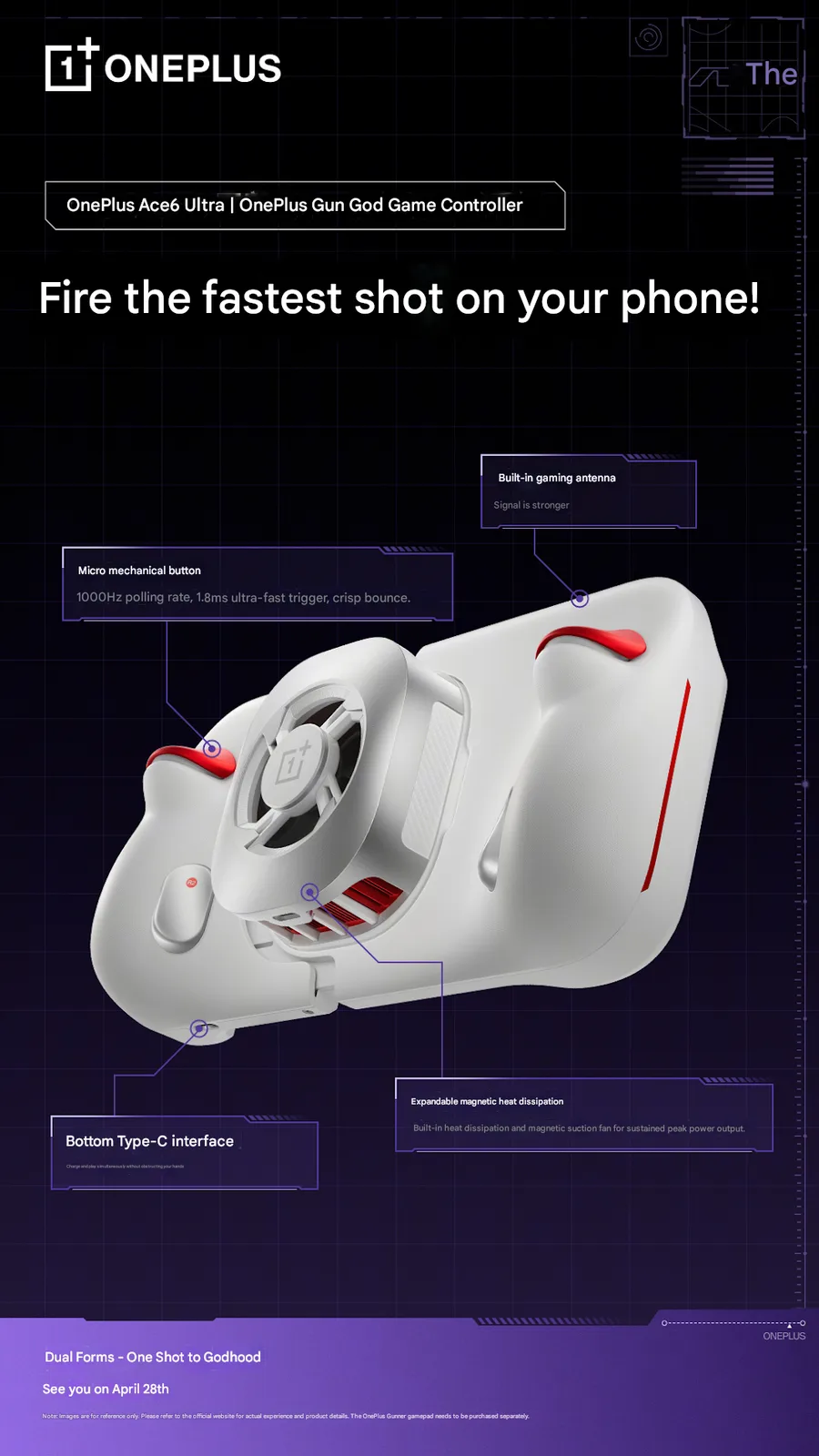 这款新游戏手柄将与 OnePlus 王牌 6 Ultra 一起在中国上市。中国首发时间定于 2026 年 4 月 28 日,目前还不清楚该公司是否会在全球市场推出这款智能手机。