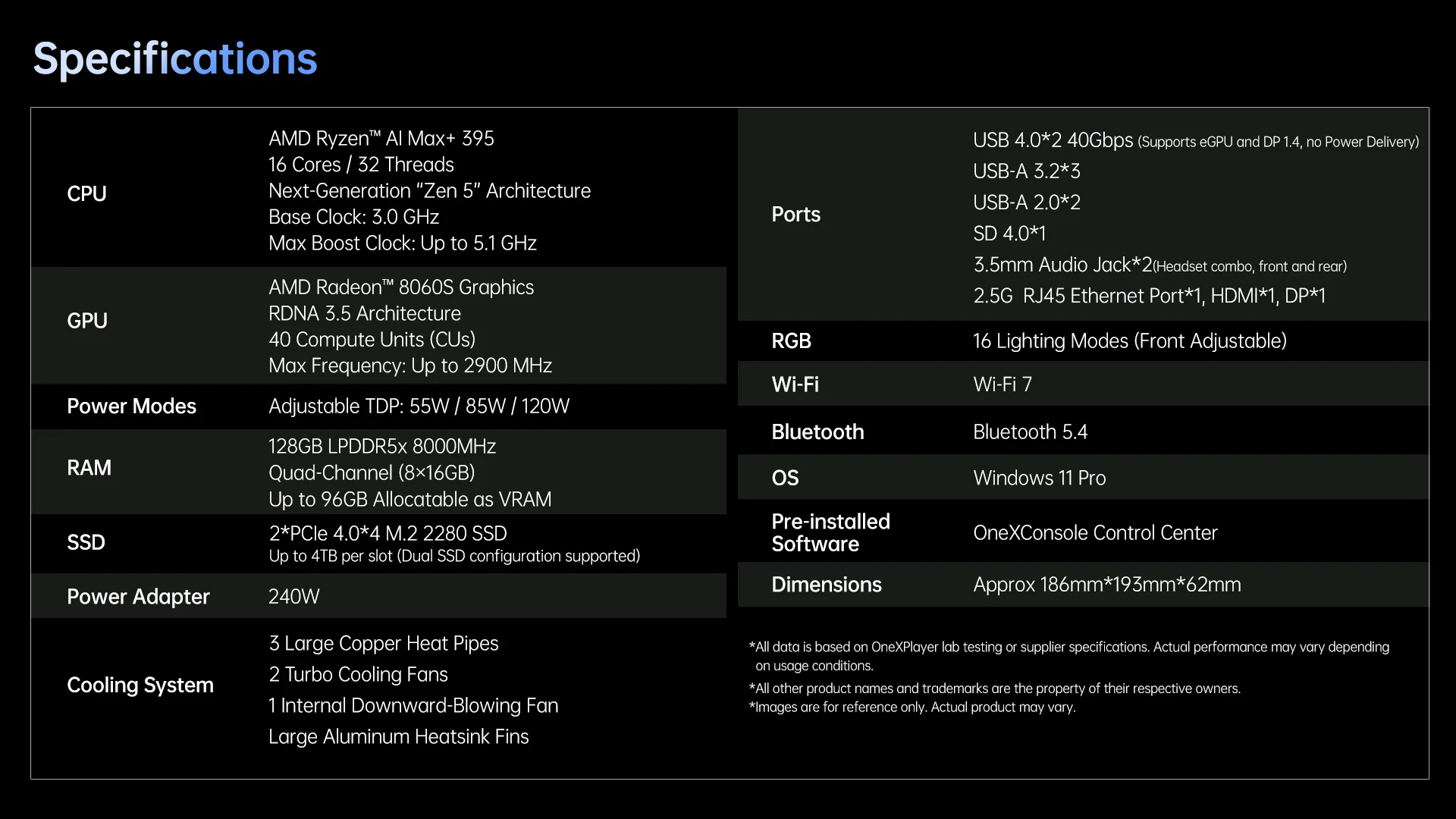 OneXPlayer 推出搭载 AMD 处理器的新款游戏迷你 PC,最高可支持 96GB VRAM