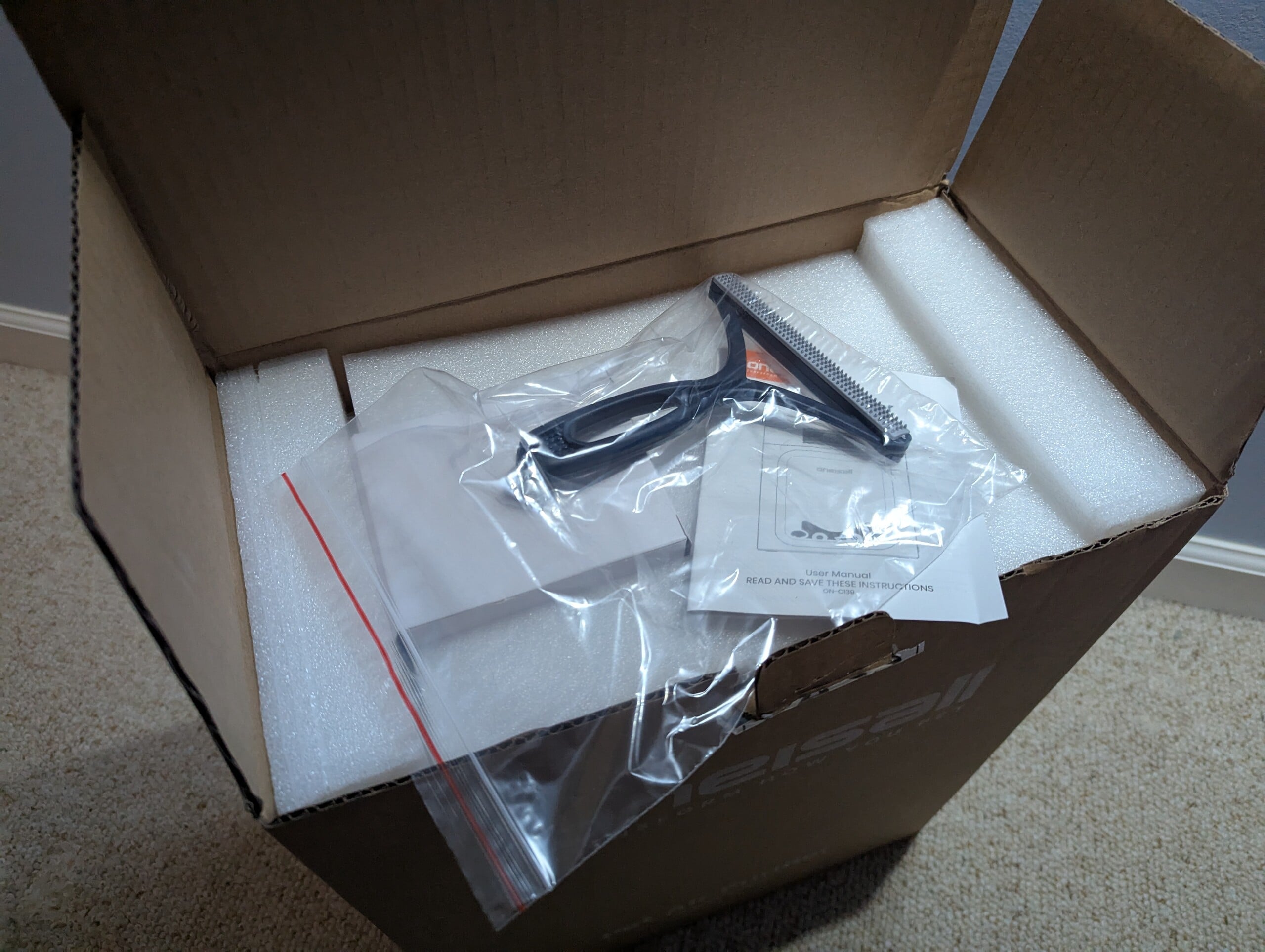 Oneisall PP02 的包装非常简洁,所有东西都用塑料包装。包装包括主机、双过滤器套件(预装)和一个专用绒毛刷。毛刷是一个很好的补充,可以帮助用户维护可清洗的预过滤器,并延长一级 HEPA 过滤器的使用寿命。