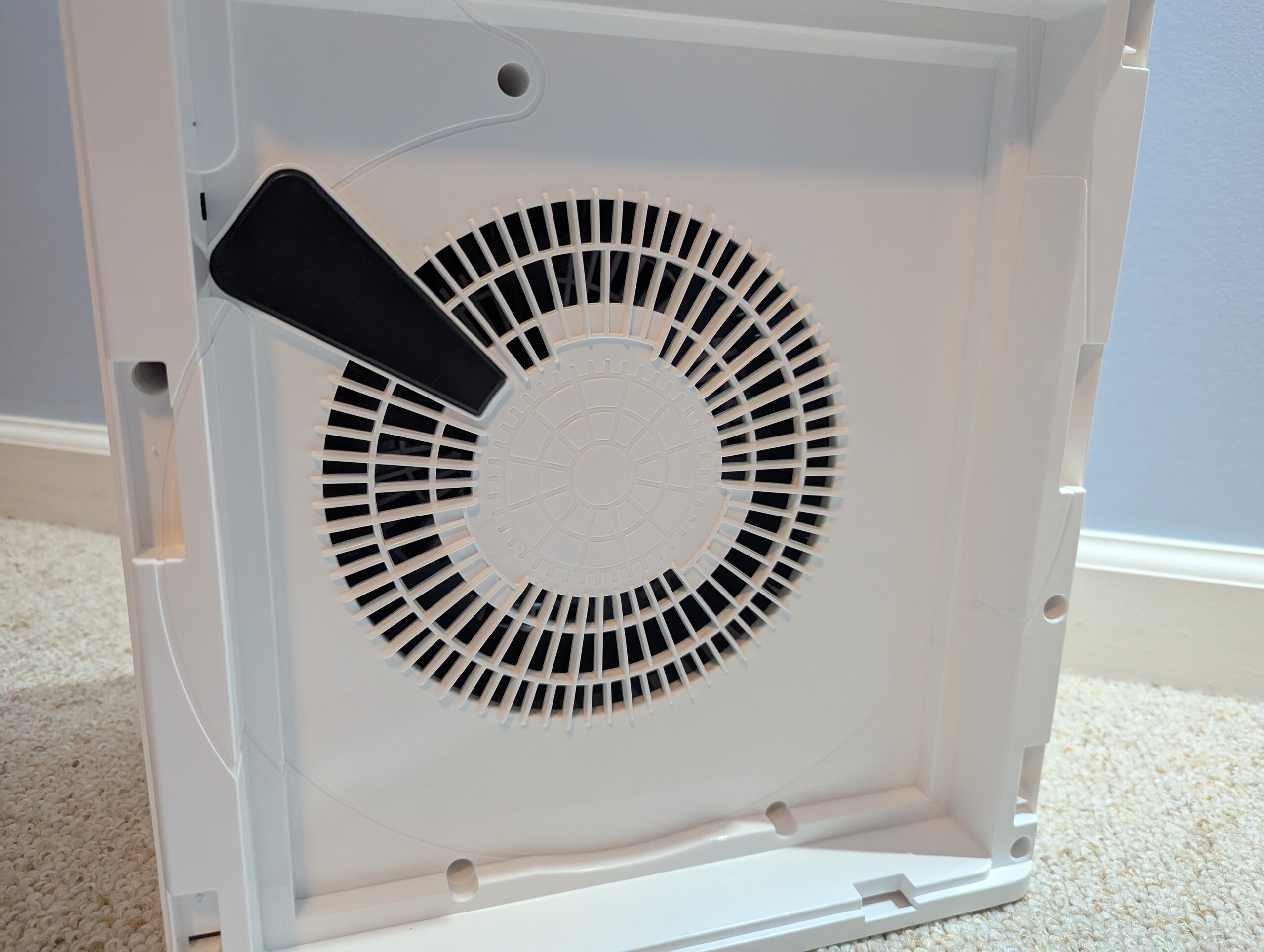乍一看,Levoit Core 300-P 的 17 秒似乎是最快的。然而,Core 300-P 是一款较小的设备,其空气路径较短,只有一个过滤器,因此在一个较小的室内循环速度自然较快,这使得 Oneisall PP02 的 24 秒性能更令人印象深刻。它在实现这个时间时,空气通过的阻力是两个完整的 H13 HEPA 过滤器和两个活性炭组的两倍。要让空气快速通过如此多的过滤介质,难度可想而知。Oneisall 仅以 7 秒之差落后于 Core 300-P,这更说明了其设计的功能性和电机的性能。