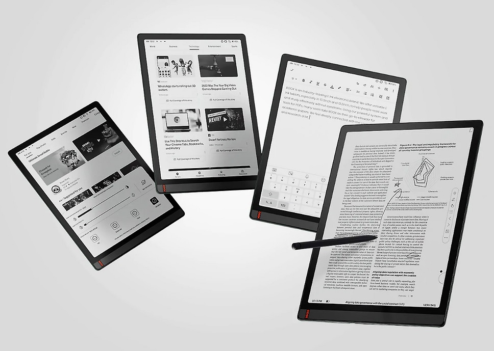 | Onyx Boox TabX E-Ink Mobius, 2200x1650, 13.3" | Onyx Boox Tab Ultra C Pro E-Ink, 1240x930, 10.3" | Lenovo Smart Paper E-Ink, 1872x1404, 10.3" | Huawei MatePad Paper E-Ink, 1872x1404, 10.3" | |