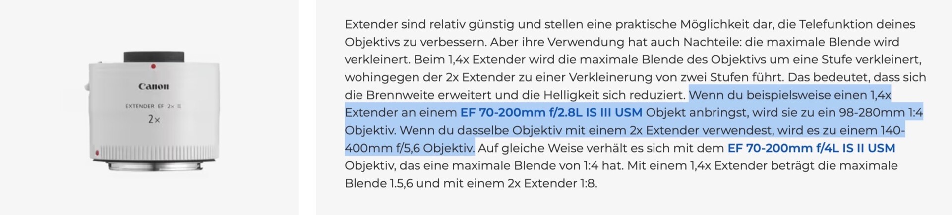 相机制造商,如佳能证明了营销也可以更加诚实。在谈到系统相机的远摄转换器时,他们通常会解释并明确说明转换器如何影响镜头的焦距和光圈。例如,70 mm f/2.8 镜头在使用 1.4x 长焦转换器时会变成 98 mm f/4 镜头,而使用 2x 转换器时则会变成 140 mm f/5.6。因此,两倍变焦会损失两个光圈。