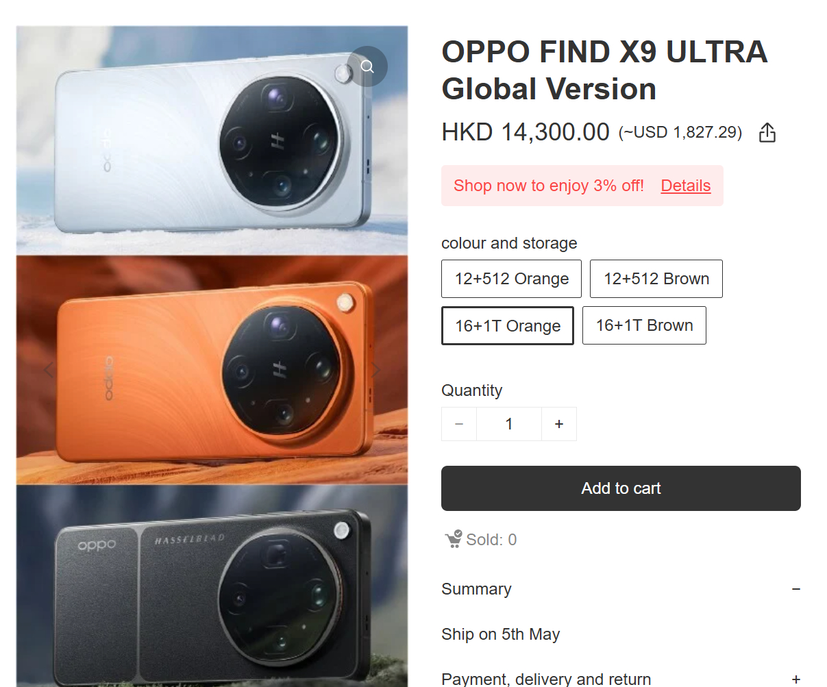为此,Find X9 Ultra 在 Average Dad 上的起价为 1310 美元(带中文软件),而带全球软件的起价为 1724 美元。同样,三一电子的 Find X9 Ultra 全球 SKU 售价也高出 150 多美元。此外,这两家进口商销售的 Find X9 Ultra 都预装了全球软件,最高配备 16 GB 内存和 1 TB 存储空间。