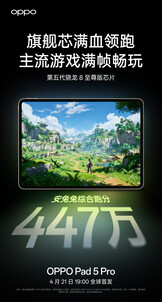 这些结果还表明,Pad 5 Pro 超越了最近的其他旗舰Android 平板电脑,如其前身、较小的 RedMagic Astra甚至大尺寸 Galaxy Tab S11 Ultra(亚马逊上的翻新版)。OPPO 补充说 骁龙 8 5 代精英版配备了 13,380 毫安时电池和 13.2 英寸 IPS 显示屏,机身厚度为 5.94 毫米,重量不到 675 克。