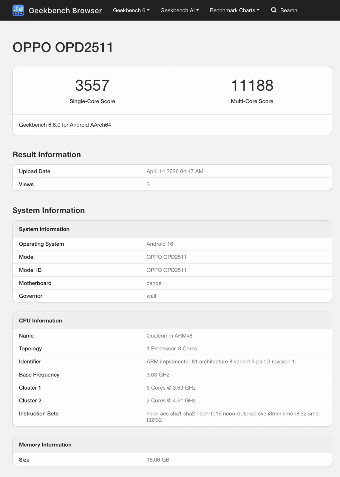 Geekbench通过Abhishek Yadav, OPPO(1)(2)