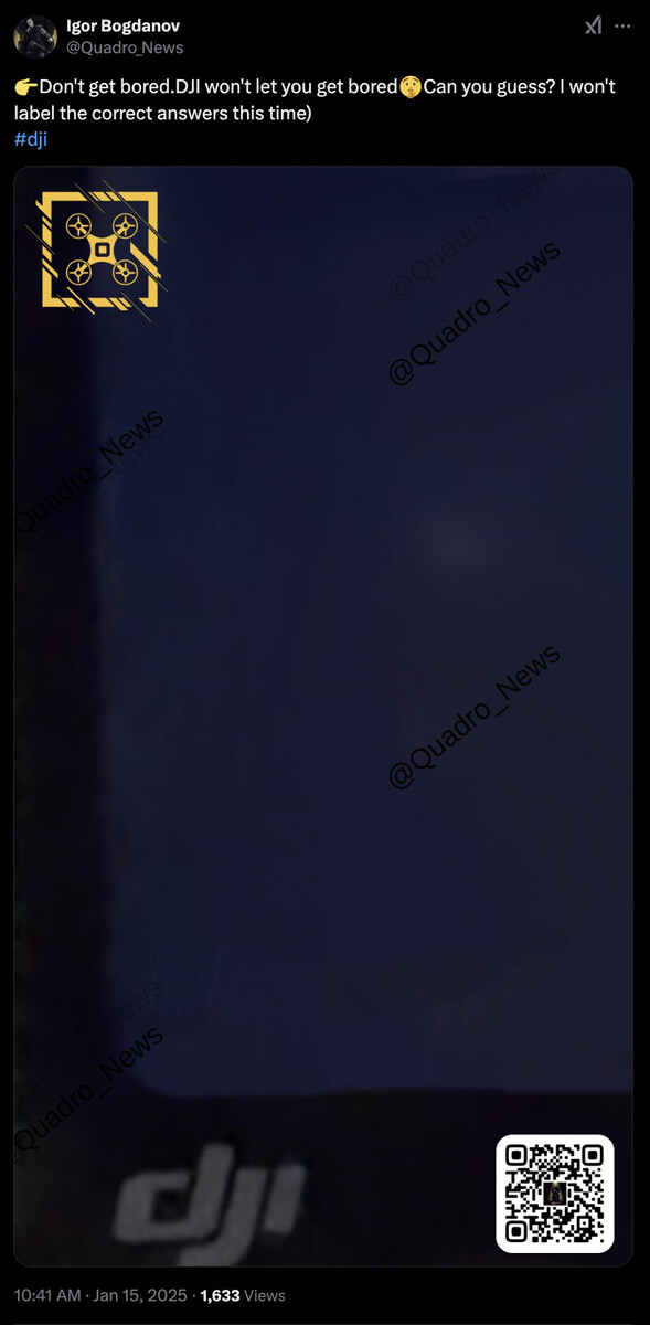 有鉴于此,一位声名狼藉的无人机泄密者现在将注意力转向了大疆未来的发布会。伊戈尔-博格达诺夫(Igor Bogdanov)没有像过去那样明确提及该设备。相反,他在 X 上留下了一个神秘的帖子,只展示了未发布硬件的一部分。