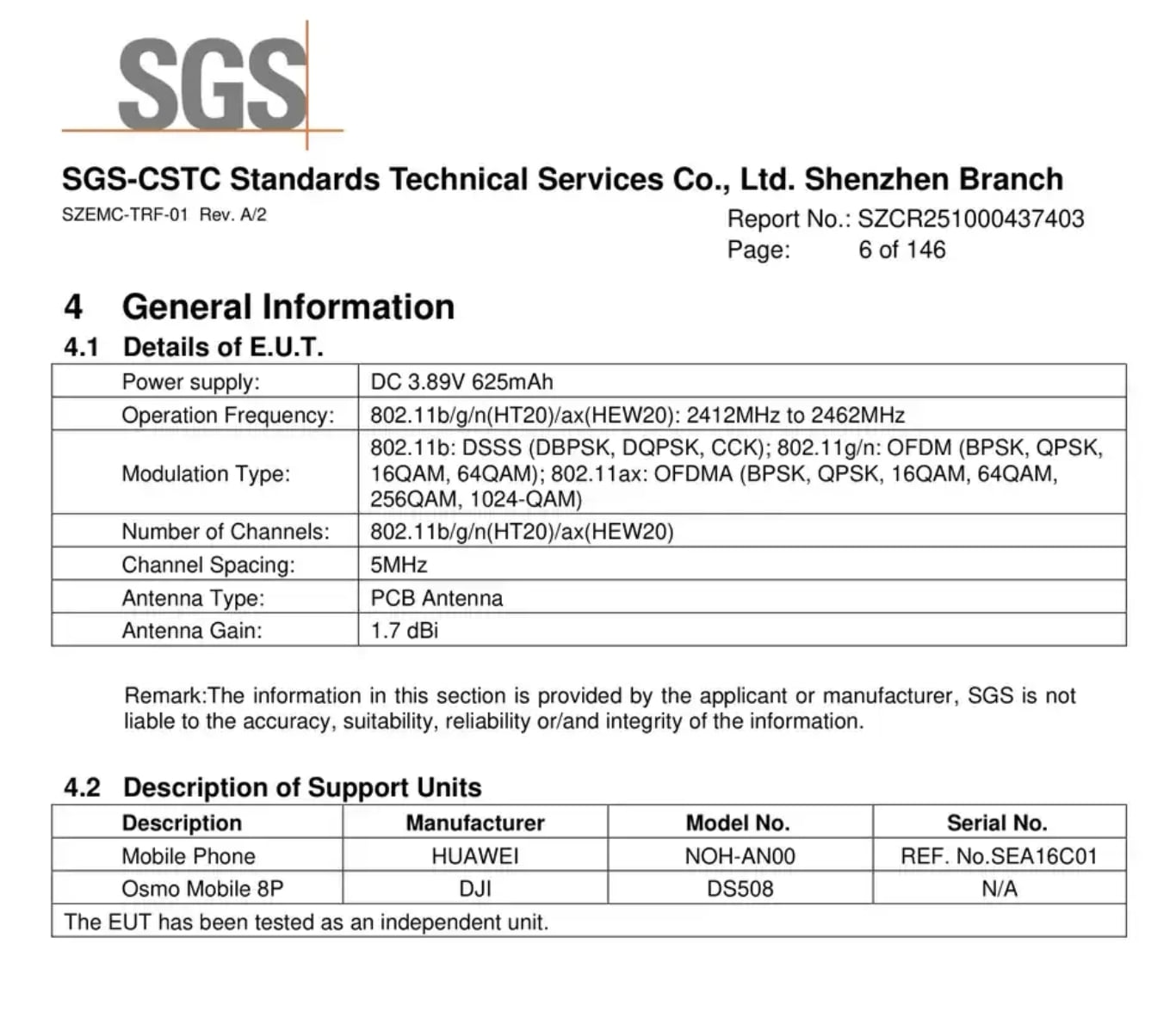 此外,监管机构还报告称,Osmo FrameTap 的电池容量为 625 毫安时。Osmo FrameTap 的电池容量仅比许多智能手表大一点,似乎偏小。另外,仅从它的名字就可以看出,Osmo FrameTap 可以优化图像取景,而无需接触 Osmo Pocket 4 或 Osmo Pocket 4 Pro。无论这款配件是与 Osmo Pocket 4 或 Osmo Pocket 4 Pro还有待观察。