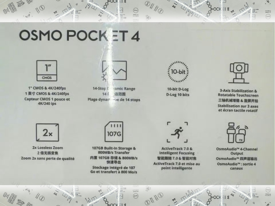 现在,围绕大疆 Osmo Pocket 4 的分辨率和帧率之谜似乎已经解开。虽然最近的 慢动作片段大疆创新在 X 上分享的一段慢动作片段暗示了增强的慢动作功能,而一张新泄露的 Osmo Pocket 4 零售包装图片也浮出水面,清楚地显示了摄像师们一直期待的规格:4K/240fps。