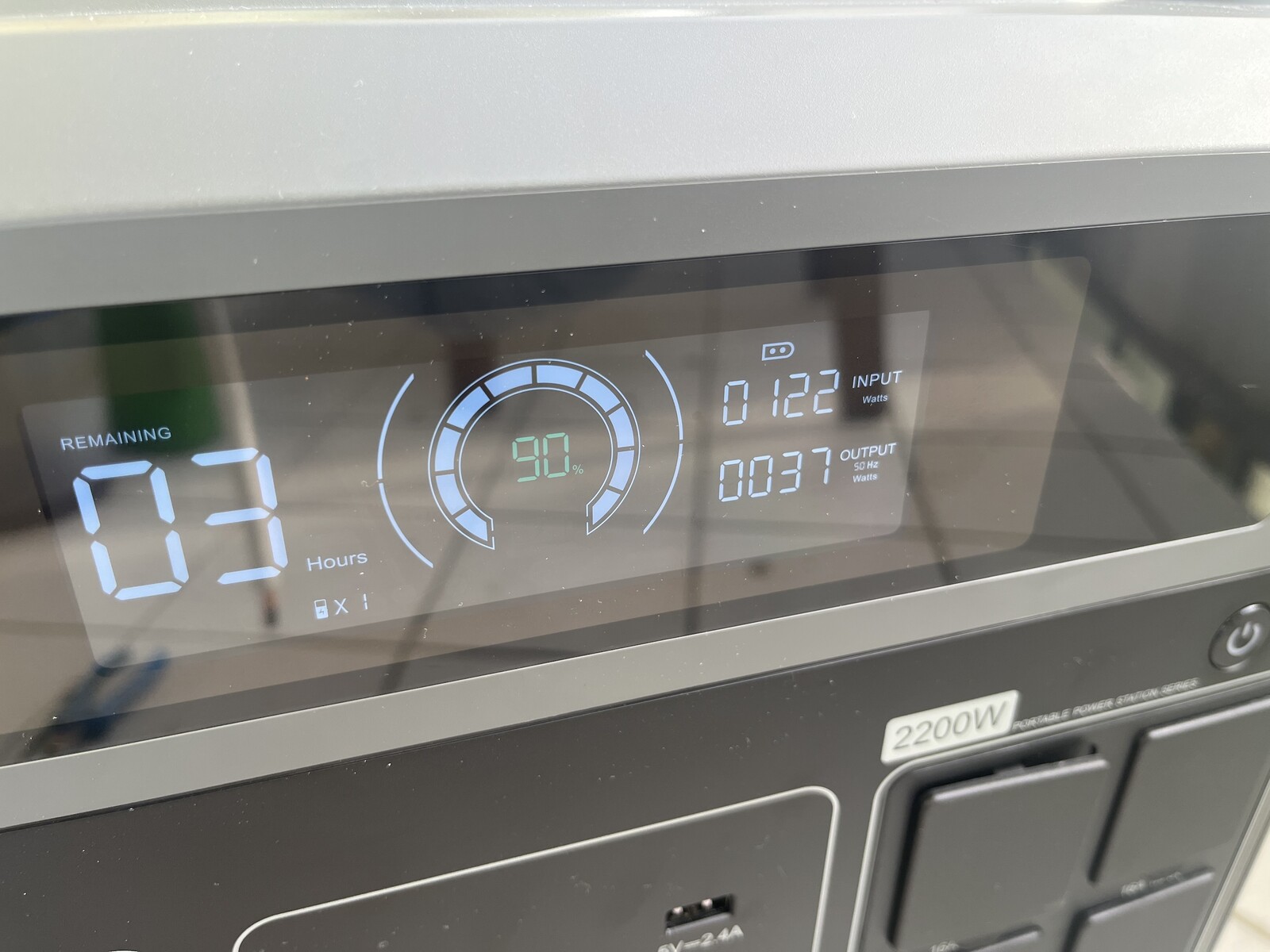 显示屏以百分比形式显示充电水平以及当前的输入和输出功率。左侧显示当前运行状态下的预计剩余运行时间(或充电时间)。遗憾的是,显示屏非常容易反光,尤其是在户外使用时。