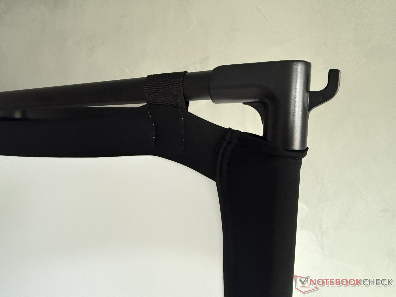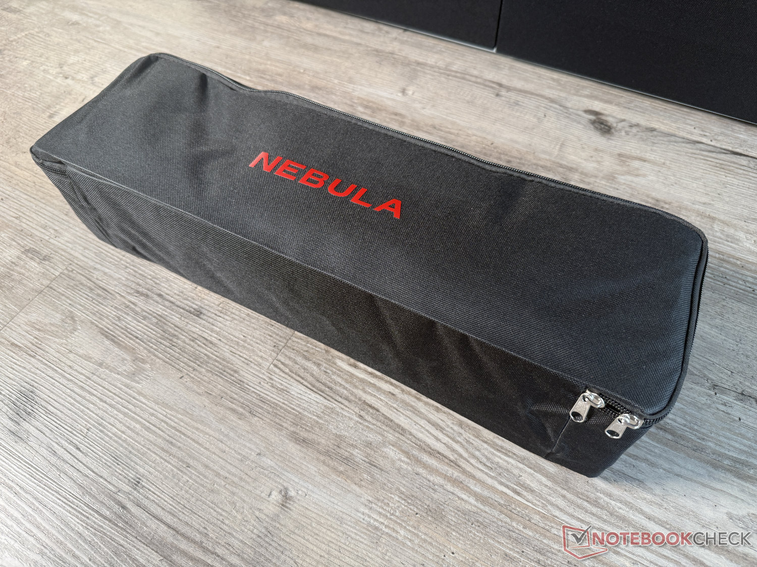 制造商提供的 100 英寸屏幕配有可折叠三脚架,建议零售价为 169.99 美元。这款产品装在一个尺寸仅为 50 x 15 x 12 厘米的袋子里。只需将用松紧带连接的两根杆子插在一起,即可快速安装。在测试中,夹紧屏幕的过程也很顺利,但两人操作比单独操作更容易。