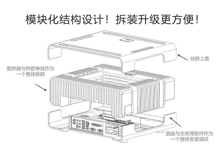 无论采用哪种方式,热量都会散发到机箱四面的铜质散热鳍片上,然后释放到室外空气中。机箱可容纳一块 ITX 主板、一个 Flex-ATX 电源和一个 2.5 英寸硬盘。据制造商称,该机箱正式支持的最快显卡是 NvidiaGeForce RTX 5060,它拥有 8 GB GDDR7 显存。