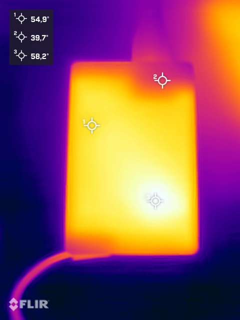 (+) The bottom heats up to a maximum of 34.6 °C / 94 F, compared to the average of 36.5 °C / 98 F