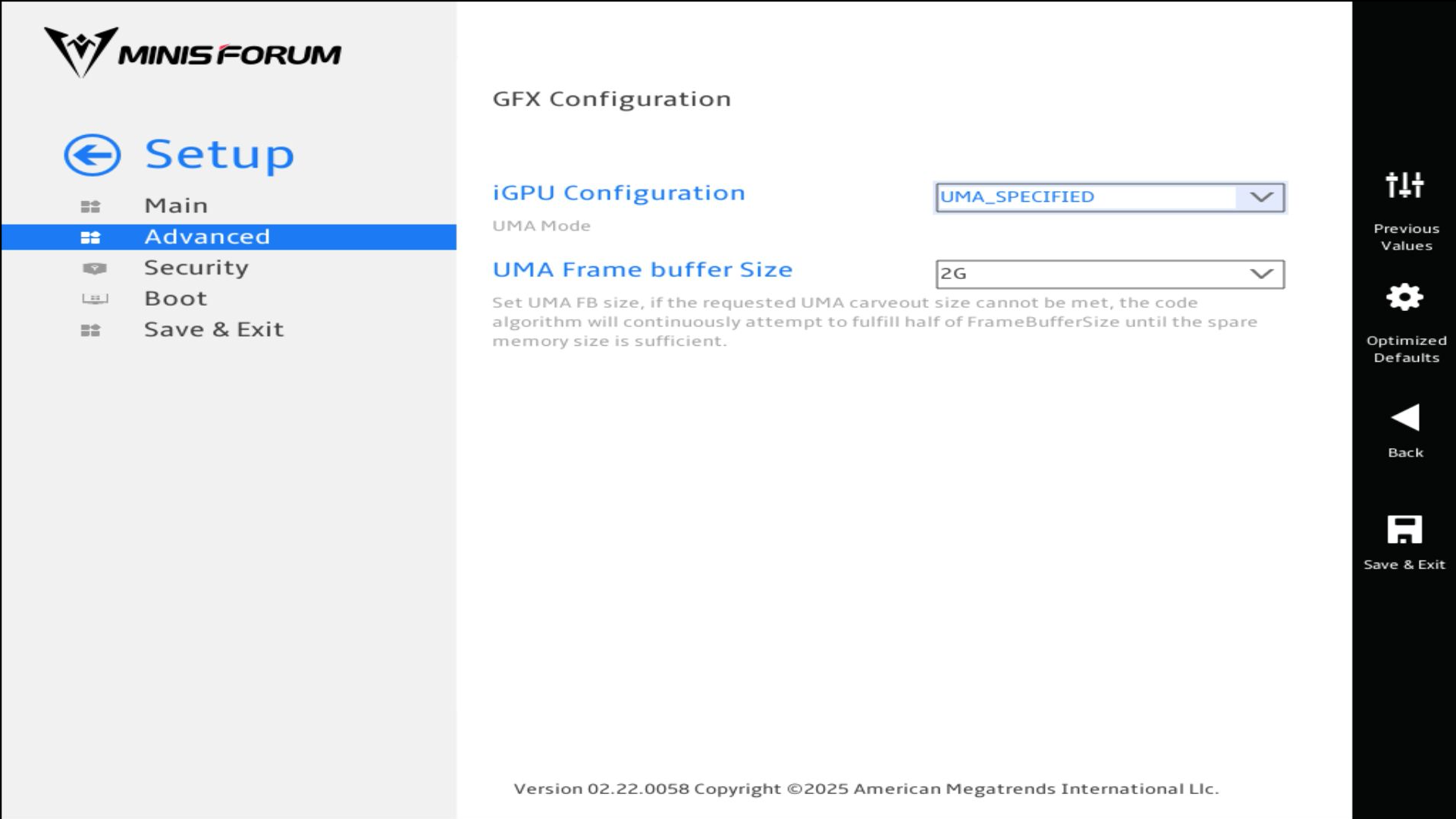 Minisforum AI X1 的所有性能测试都是在出厂设置下进行的。在 UEFI 中,Minisforum 还允许自定义处理器的性能配置文件和风扇控制。
