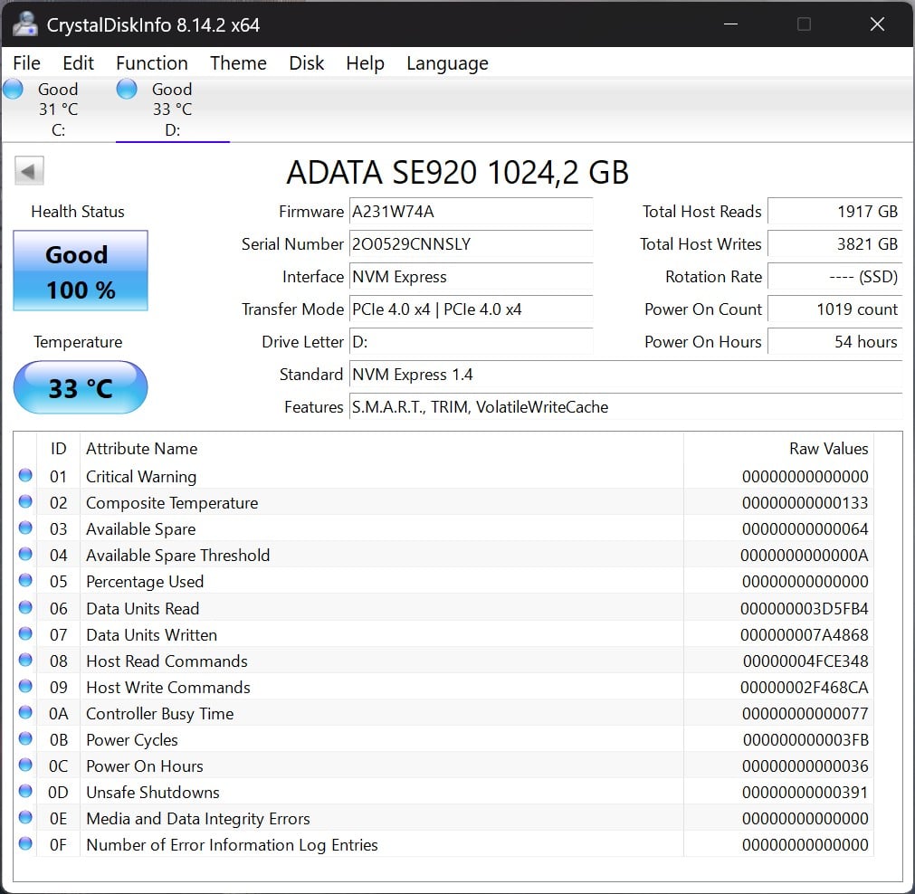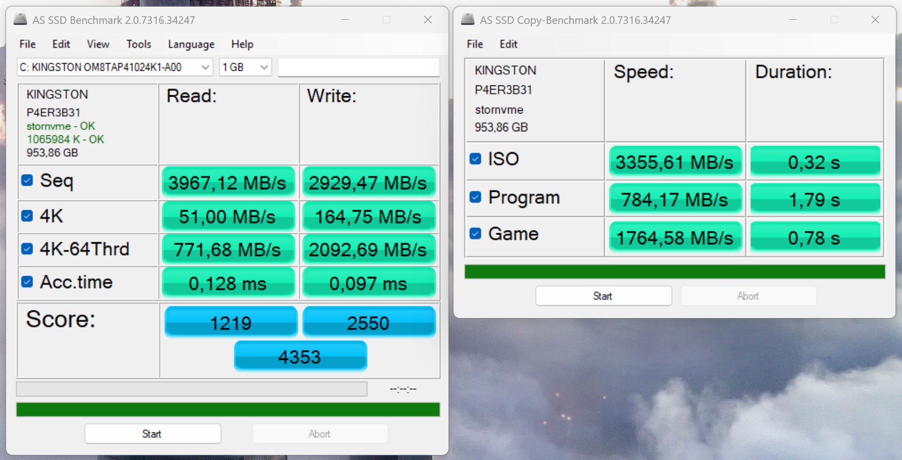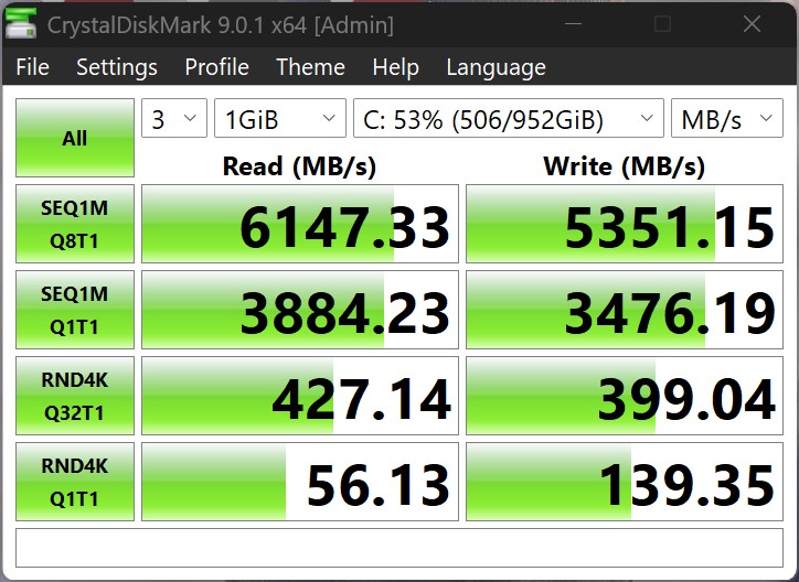 | Connectivity - USB 3.x / USB4 / TB - AS SSD Seq Read Test (1GB) | |