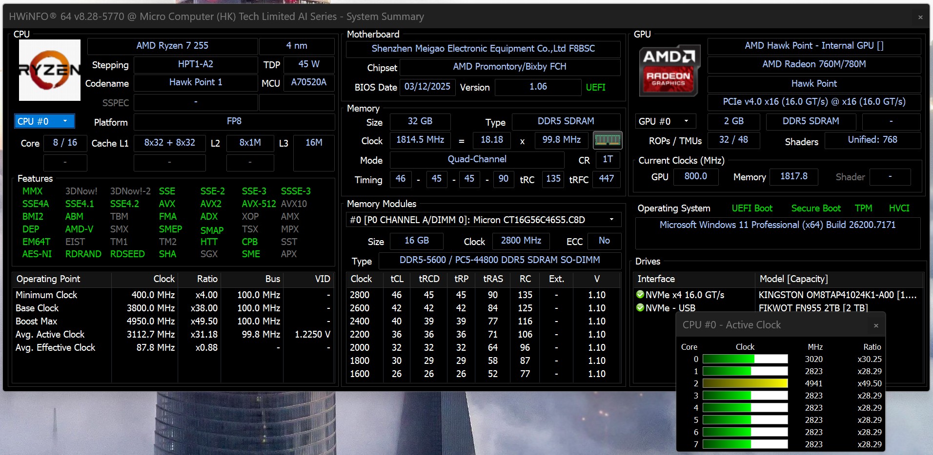 ......(英文 AMD Ryzen 7 255Minisforum AI X1 采用现代架构,可提供稳定的单核和多核性能。通过直接比较,其性能达到了其他 8 核处理器的预期水平,制造商没有人为限制其性能。该 SoC 的短期功耗最高可达 65 瓦。