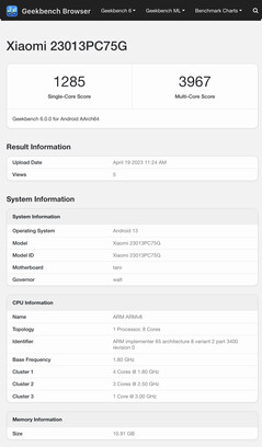 23013PC75G再次抬头,可能离小米发布POCO F5 Pro的设备只有几周时间。作为参考,23013PC75G是23013PC75C的全球版本,该型号为 红米K60.三个Geekbench列表似乎证实了这一点,这都表明该设备采用了 骁龙8 Plus第一代芯片组。