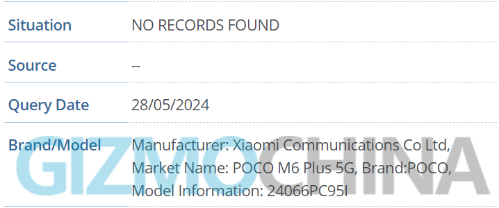 相反,该网站认为 24066PC95I 将以 POCO M6 Plus 5G 的名义推出。看来,Gizmochina的断言是基于最新的 IMEI 数据库结果和 "HyperOS 代码"。然而,该网站关于后者的证据并未显示它是从 HyperOS 代码串截图而来。