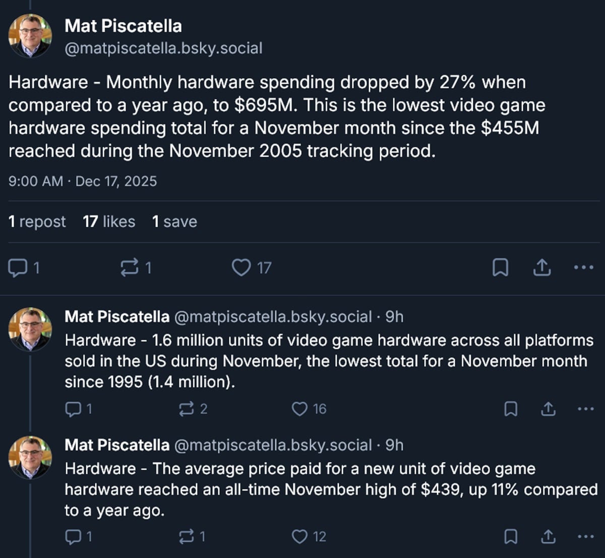 索尼可能会庆祝 Circana 的报告,但硬件市场也出现了一些警示信号。与 2020 年同期相比,总销售额下降了 27与 2024 年同期相比下降了 27%。消费额达到 6.95 亿美元,是自 2005 年以来 11 月份的最低值。零售商销售了 160 万台,这是自 1995 年 11 月以来的最差成绩。