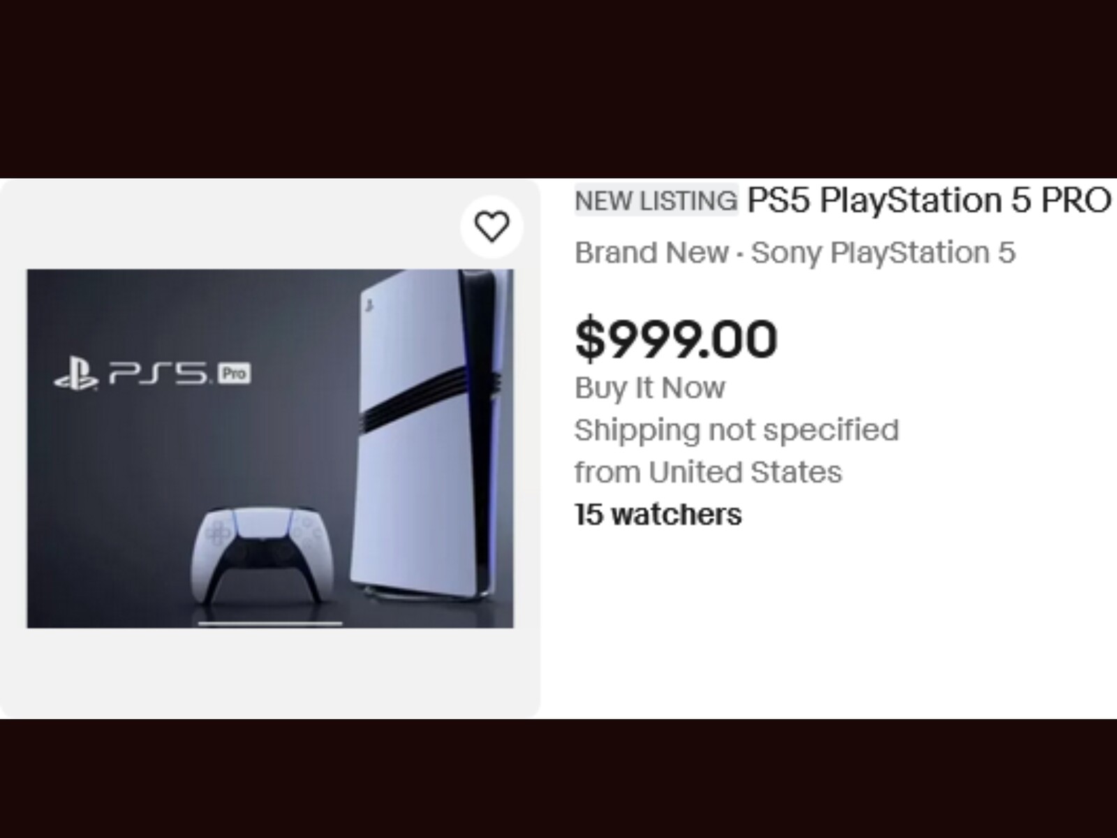 PS5 Pro 标准版也有黄牛倒卖,不过与原售价 699 美元的差价仍在三位数范围内。在调查期间,这款游戏机在 eBay 上的售价约为 1000 美元。