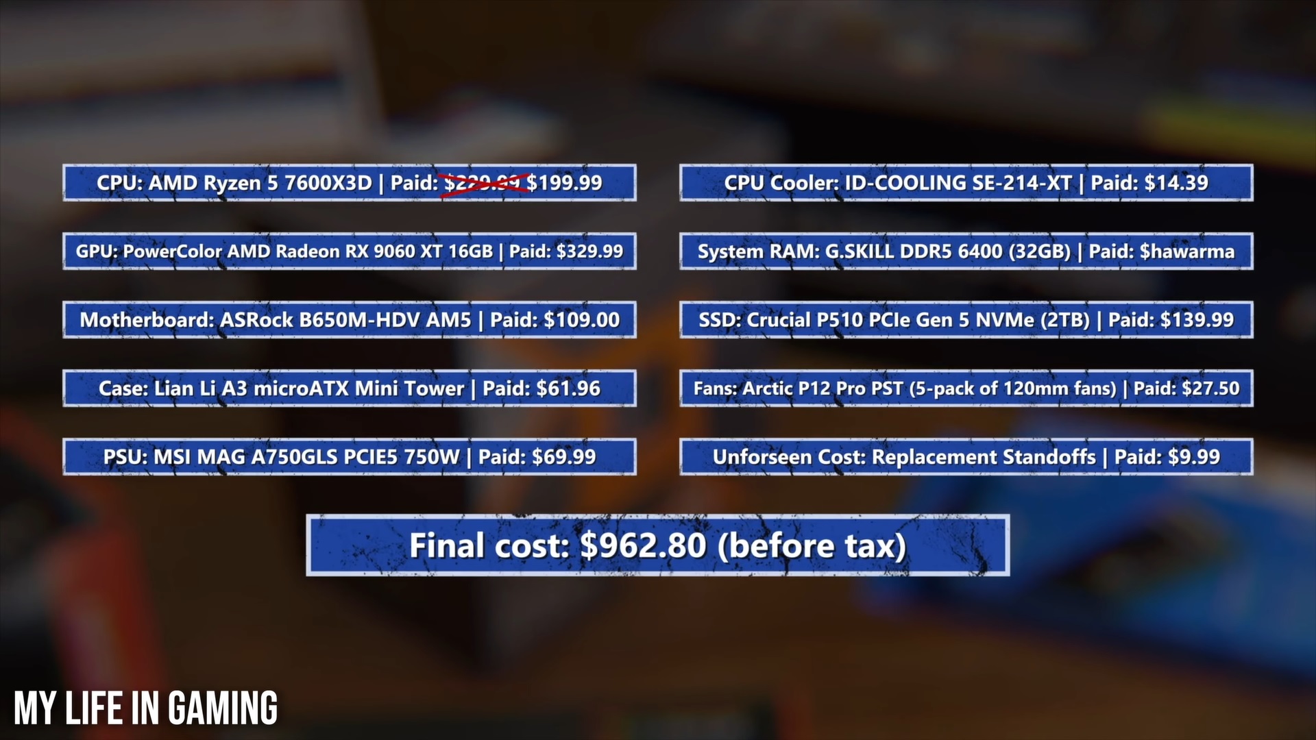 DF 展示了 YouTube 频道 My Life In Gaming 制作的 PS5 Pro 同等 PC。该电脑配置为 RX 9060 XT 16 GB、Ryzen 5 7600X3D、2 TB 存储空间,售价为 963 美元。不过,这台游戏 PC 并不包括所使用的 32 GB DDR5-6400 内存的价格。