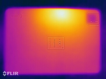 (±) The maximum temperature on the upper side is 41.9 °C / 107 F, compared to the average of 33.7 °C / 93 F, ranging from 20.7 to 53.2 °C for the class Tablet.