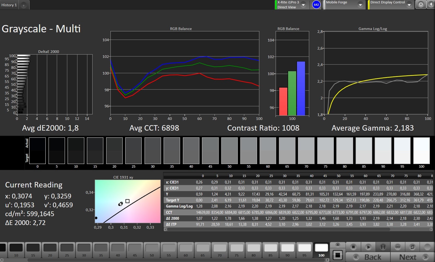 ΔE Greyscale Calman: 1.8 | ∀{0.09-98 Ø5}